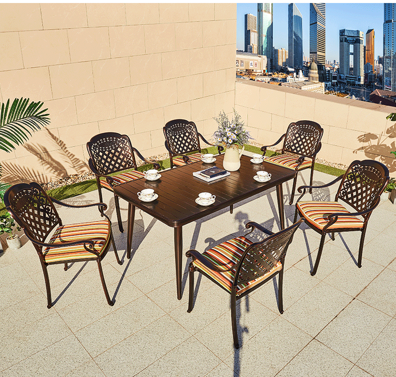Bàn ghế Sân vườn ngoài trời bàn ghế hợp kim nhôm giải trí biệt thự Châu Âu ban công nhôm đúc bàn ghế ngoài trời là lựa chọn lý tưởng cho không gian công cộng, sân vườn hoặc khu đô thị. Sản phẩm giúp nâng cao hình ảnh chuyên nghiệp và sạch đẹp cho môi trường sống.