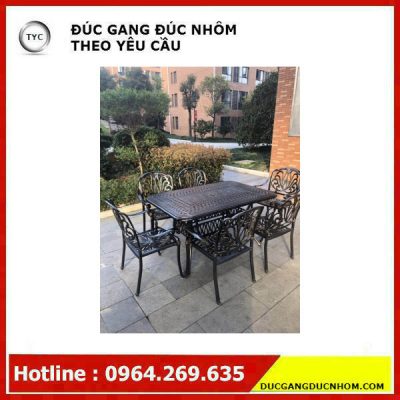 Bàn ghế sân vườn nhập khẩu. Bàn ghế nhôm đúc nhập khẩu. Bàn ghế sân vườn nhôm đúc nhập khẩu sơn tĩnh điện để ngoài trời. Sản phẩm cao cấp nhập khẩu từ Trung Quốc, nơi có truyền thống sản xuất lâu năm, công nghệ hiện đại và kinh nghiệm xuất khẩu hàng hoá. Bàn nhôm cao 73cm. Dài 150cm. Rộng 90cm. Nặng 25kg. Giá : 8.200.000 VNĐ Ghế nhôm cao tựa 92cm. Chân 64 x 65 cm. Nặng 6.5kg. Giá : 1.900.000 VNĐ Hình ảnh bàn ghế sân vườn nhập khẩu. Bàn ghế nhôm đúc nhập khẩu CÂU HỎI THƯỜNG GẶP : VẬN CHUYỂN : Hàng hóa có được vận chuyển về tận nhà không ? => Hiện chúng tôi chỉ hỗ trợ vận chuyển trên những tuyến đường chính, tuyến quốc lộ Bắc Nam . Nếu nhà của quý khách ở cách xa những tuyến đường chính có thể liên hệ hỗ trợ vận tải ở địa phương. Đóng gói bàn ghế trước khi giao THANH TOÁN : Thanh toán sau có được không ? => Hiện tại chúng tôi chưa hỗ trợ thanh toán sau. Bởi chúng tôi không làm hàng sẵn để bán, khi có đơn đặt hàng chúng tôi mới bắt đầu làm hàng. Bởi vậy, nếu quý khách đặt hàng nhưng không nhận hàng chúng tôi phải chuyển sản phẩm thành nguyên liệu hoặc lưu kho trong thời gian dài. Hiện các đơn đặt hàng quý khách thanh toán trước 20% giá trị đơn đặt hàng và 80% còn lại thanh toán khi nhận hàng. BẢO TRÌ : Sản phẩm của chúng tôi có được hỗ trợ bảo trì không ? => Tùy từng mặt hàng chúng tôi có thể hỗ trợ sơn lại, đúc lại 1 số chi tết bị hỏng. Tuy nhiên chi phí bảo trì chúng tôi vẫn tính theo giá sản phẩm. PHỤ KIỆN : Có hỗ trợ các phụ kiện kèm theo ? => Hiện nay chúng tôi chỉ hỗ trợ các phụ kiện bằng gang , các phụ kiện bằng kính, gỗ, cao su thì tùy thuộc vào các nhà cung cấp lân cận. Tùy thuộc vào yêu cầu chúng tôi sẽ báo lại với quý khách cụ thể. Hình ảnh bàn ghế được nhập về kho tại Việt Nam Hình ảnh bàn giao và không gian của khách hàng Hình ảnh của nhà sản xuất Trung Quốc