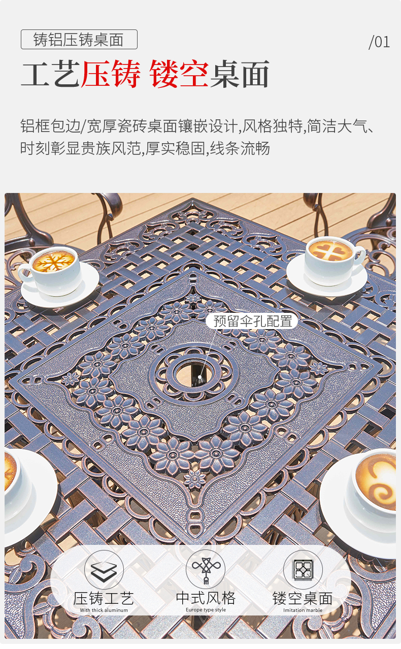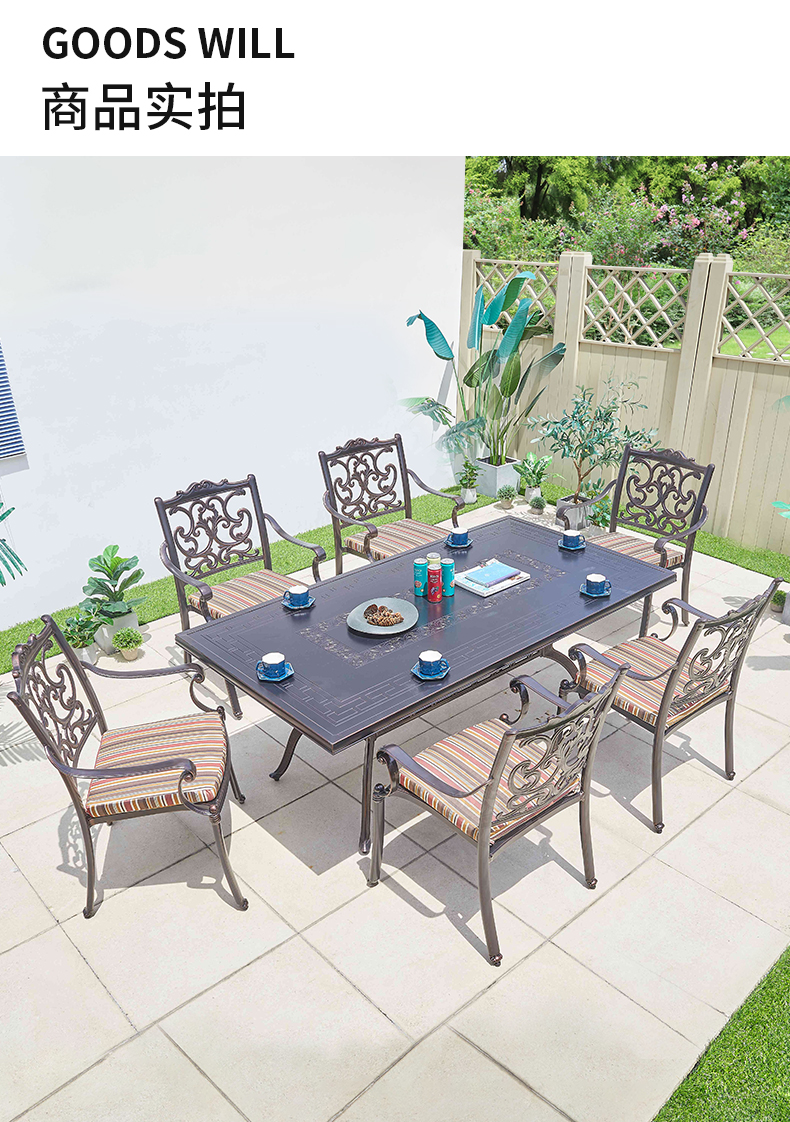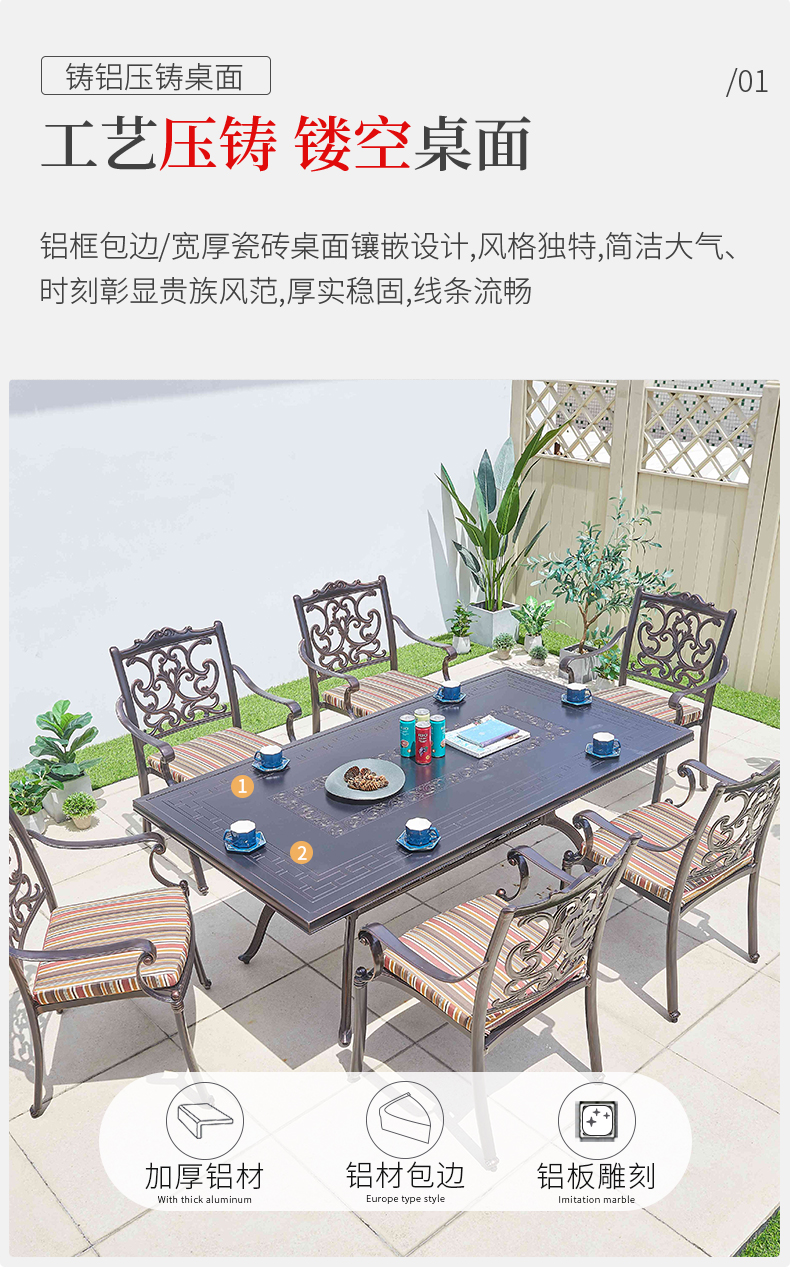 Bàn ghế sân vườn nhập khẩu, chất liệu nhôm đúc là lựa chọn lý tưởng cho không gian công cộng, sân vườn hoặc khu đô thị. Sản phẩm giúp nâng cao hình ảnh chuyên nghiệp và sạch đẹp cho môi trường sống.