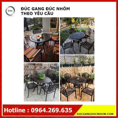 Bàn ghế sân vườn nhôm đúc 027. Sản phẩm với kích thước nhỏ gọn, mẫu mã hoa văn mềm mại và được phủ sơn 5 lớp. Chống han rỉ, mưa nắng. Phù hợp để ở sân vườn, ban công, ngoài trời. Bàn đường kính 800+_10mm. Cao 720+_10mm. Trọng lượng 24+_1,5kg giá 4.600.000 VNĐ/ Bàn Ghế ( phần ngồi ) dao động từ 400-450mm. Chất liệu Nhôm nặng khoảng 10Kg. Chất liệu Gang nặng khoảng 28-30Kg. (Giá 1.300.000/Chiếc) Bàn ghế sân vườn nhôm đúc 027 CÂU HỎI THƯỜNG GẶP : VẬN CHUYỂN : Hàng hóa có được vận chuyển về tận nhà không ? => Hiện chúng tôi chỉ hỗ trợ vận chuyển trên những tuyến đường chính, tuyến quốc lộ Bắc Nam . Nếu nhà của quý khách ở cách xa những tuyến đường chính có thể liên hệ hỗ trợ vận tải ở địa phương. Đóng gói bàn ghế gang nhôm THANH TOÁN : Thanh toán sau có được không ? => Hiện tại chúng tôi chưa hỗ trợ thanh toán sau. Bởi chúng tôi không làm hàng sẵn để bán, khi có đơn đặt hàng chúng tôi mới bắt đầu làm hàng. Bởi vậy, nếu quý khách đặt hàng nhưng không nhận hàng chúng tôi phải chuyển sản phẩm thành nguyên liệu hoặc lưu kho trong thời gian dài. Hiện các đơn đặt hàng quý khách thanh toán trước 20% giá trị đơn đặt hàng và 80% còn lại thanh toán khi nhận hàng. BẢO TRÌ : Sản phẩm của chúng tôi có được hỗ trợ bảo trì không ? => Tùy từng mặt hàng chúng tôi có thể hỗ trợ sơn lại, đúc lại 1 số chi tết bị hỏng. Tuy nhiên chi phí bảo trì chúng tôi vẫn tính theo giá sản phẩm. PHỤ KIỆN : Có hỗ trợ các phụ kiện kèm theo ? => Hiện nay chúng tôi chỉ hỗ trợ các phụ kiện bằng gang , các phụ kiện bằng kính, gỗ, cao su thì tùy thuộc vào các nhà cung cấp lân cận. Tùy thuộc vào yêu cầu chúng tôi sẽ báo lại với quý khách cụ thể. Hình ảnh không gian đẹp của khách hàng LIÊN HỆ ĐẶT HÀNG XÍCH ĐU NHÔM, BÀN GHẾ SÂN VƯỜN NHÔM ĐÚC : 0964.269.635
