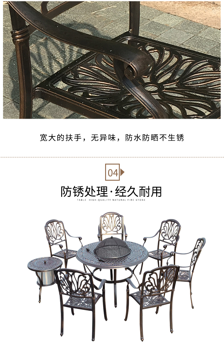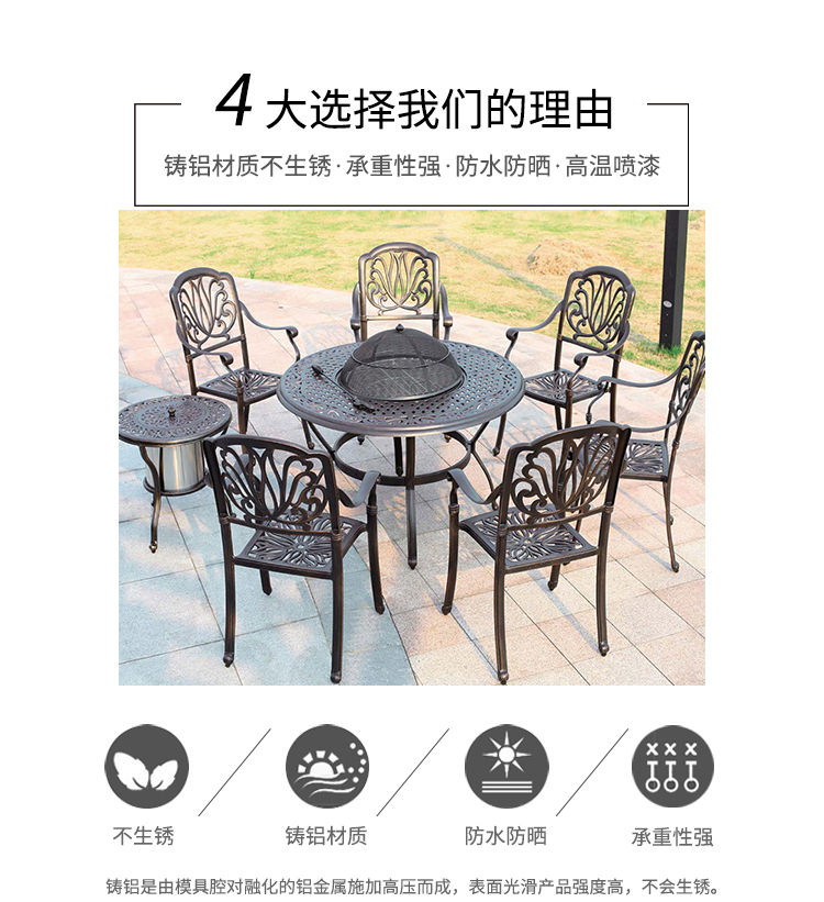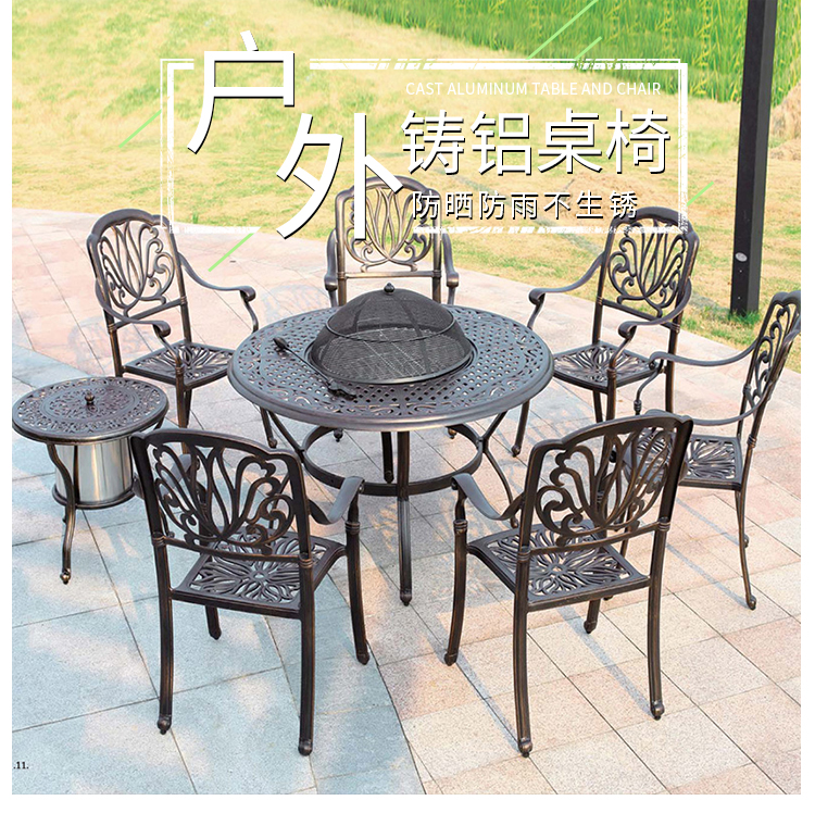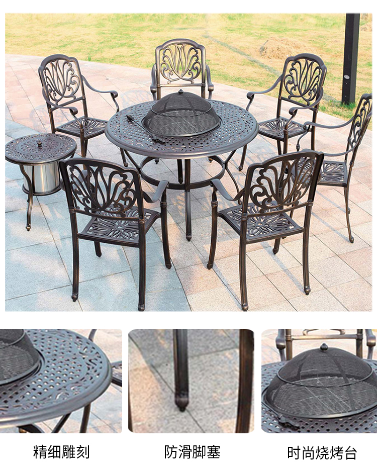 Bàn ghế sân vườn nhôm đúc. Bàn nướng sân vườn nhập khẩu được thiết kế để tạo điểm nhấn cho khu vực sân vườn, ban công hoặc không gian ngoài trời.