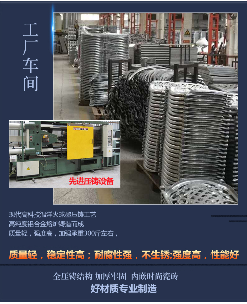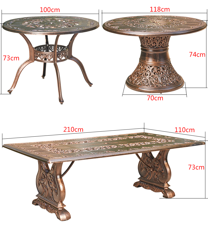 Bàn ghế sân vườn nhôm đúc nhập khẩu cao cấp 2. Bàn ghế sân vườn nhôm đúc nhập khẩu sơn tĩnh điện để ngoài trời. Sản phẩm cao cấp nhập khẩu từ Trung Quốc, nơi có truyền thống sản xuất lâu năm, công nghệ hiện đại và kinh nghiệm xuất khẩu hàng hoá. Bàn nhôm cao 74cm. Đường kính mặt bàn 118cm. Đường kính chân bàn 70cm. Nặng 33.8kg. Giá : 9.000.000 VNĐ Ghế nhôm cao tựa 99cm. Chân 58 x 52cm. Nặng 6.5kg. Giá : 3.200.000 VNĐ Hình ảnh bàn ghế sân vườn nhôm đúc nhập khẩu cao cấp 2 CÂU HỎI THƯỜNG GẶP : VẬN CHUYỂN : Hàng hóa có được vận chuyển về tận nhà không ? => Hiện chúng tôi chỉ hỗ trợ vận chuyển trên những tuyến đường chính, tuyến quốc lộ Bắc Nam . Nếu nhà của quý khách ở cách xa những tuyến đường chính có thể liên hệ hỗ trợ vận tải ở địa phương. Đóng gói bàn ghế trước khi giao THANH TOÁN : Thanh toán sau có được không ? => Hiện tại chúng tôi chưa hỗ trợ thanh toán sau. Bởi chúng tôi không làm hàng sẵn để bán, khi có đơn đặt hàng chúng tôi mới bắt đầu làm hàng. Bởi vậy, nếu quý khách đặt hàng nhưng không nhận hàng chúng tôi phải chuyển sản phẩm thành nguyên liệu hoặc lưu kho trong thời gian dài. Hiện các đơn đặt hàng quý khách thanh toán trước 20% giá trị đơn đặt hàng và 80% còn lại thanh toán khi nhận hàng. BẢO TRÌ : Sản phẩm của chúng tôi có được hỗ trợ bảo trì không ? => Tùy từng mặt hàng chúng tôi có thể hỗ trợ sơn lại, đúc lại 1 số chi tết bị hỏng. Tuy nhiên chi phí bảo trì chúng tôi vẫn tính theo giá sản phẩm. PHỤ KIỆN : Có hỗ trợ các phụ kiện kèm theo ? => Hiện nay chúng tôi chỉ hỗ trợ các phụ kiện bằng gang , các phụ kiện bằng kính, gỗ, cao su thì tùy thuộc vào các nhà cung cấp lân cận. Tùy thuộc vào yêu cầu chúng tôi sẽ báo lại với quý khách cụ thể. Hình ảnh bàn ghế được nhập về kho tại Việt Nam Hình ảnh bàn giao và không gian của khách hàng Hình ảnh của nhà sản xuất Trung Quốc 品牌 型 号 包装细节 包装体积(立方)约 运费 法格莱旗舰店 FGL-2G0410 纸箱打木架 2立方 全国314城区包邮送货到楼下,详情请咨询客服 简 称 户外铸铝桌椅套装 产地 广东佛山 生 产 为保证产品质量,生产需要一定周期,发货时间请以与客服协商的发货时间为准,详情咨询客服 颜 色 古铜颜色 售后服务 有专业客服跟进,安装及使用过程遇到的问题,补发配件等等 商品材质 【铸铝特点】:户外专用,防水防晒,防腐蚀,不生锈。桌子椅子均为铸铝成型铸造,非常结实,不怕风吹雨打日晒,适合各种室外环境,且经久耐用!【静电喷粉,表面经220度高温烤漆,纹花电脑雕刻工艺精湛,高端大气】
