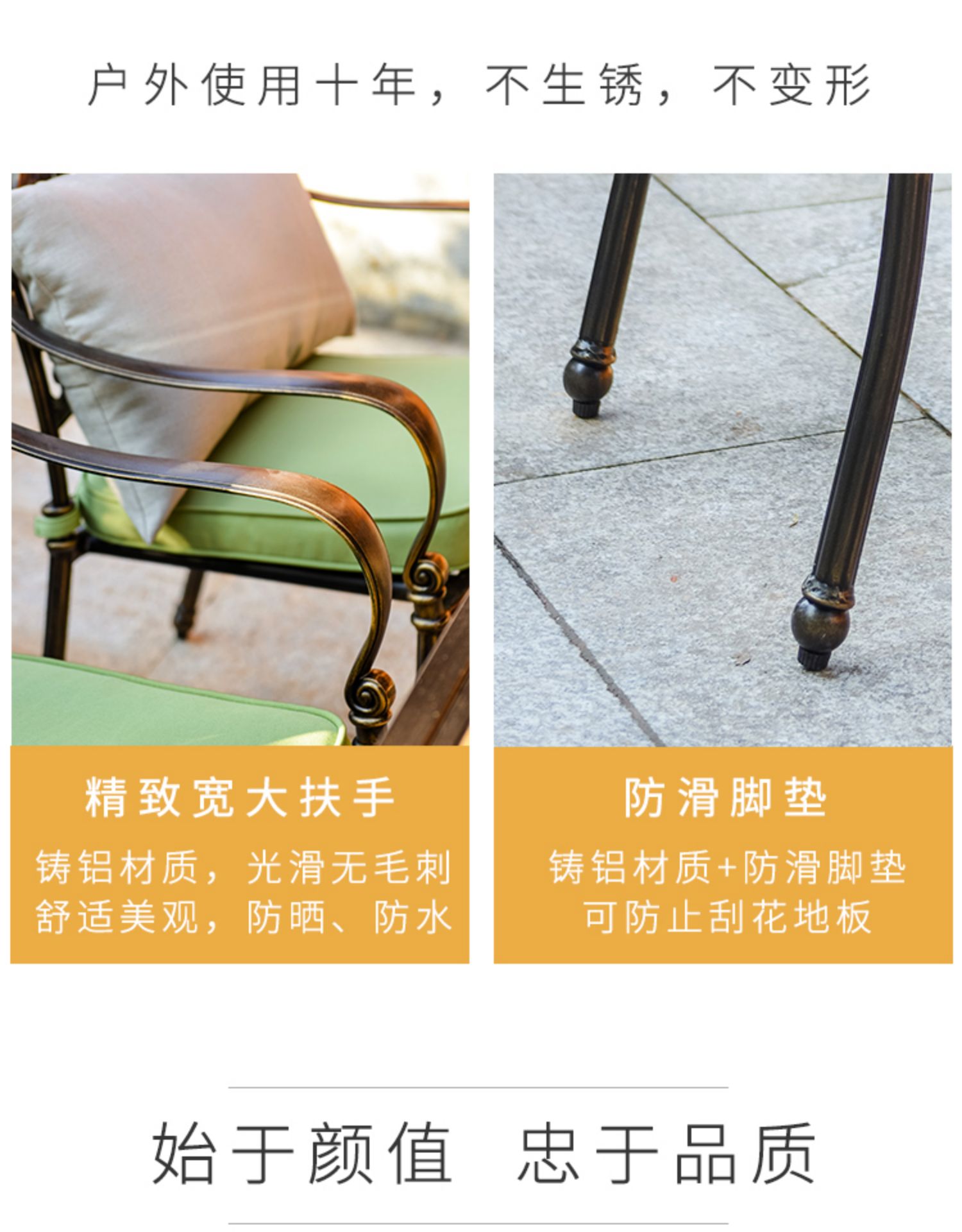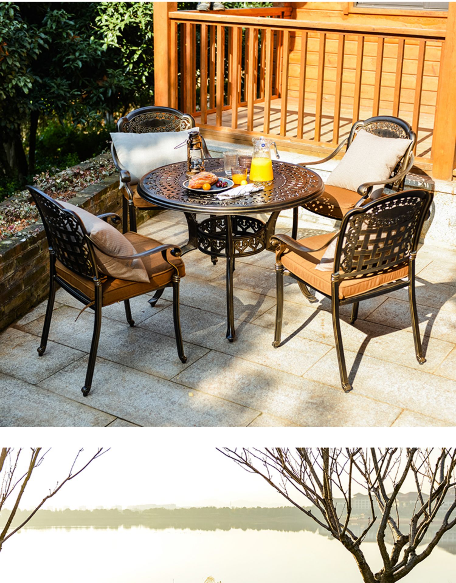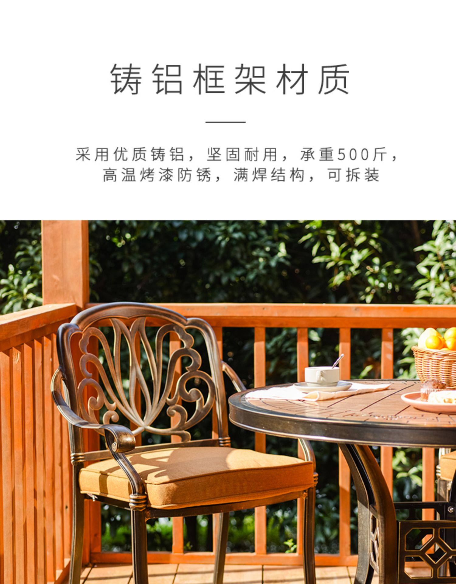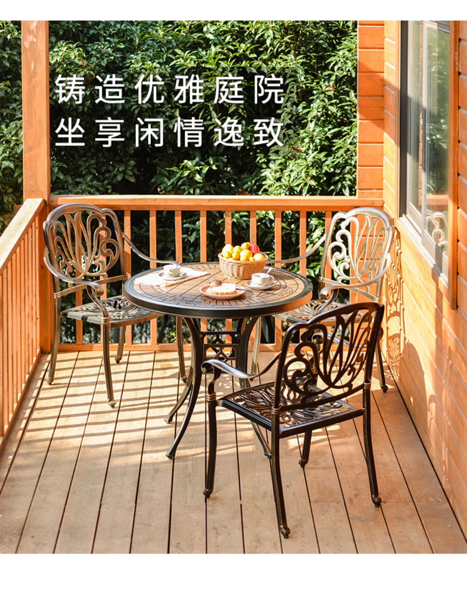 Bàn ghế sân vườn nhôm đúc nhập khẩu sơn tĩnh điện để ngoài trời được thiết kế để tạo điểm nhấn cho khu vực sân vườn, ban công hoặc không gian ngoài trời.