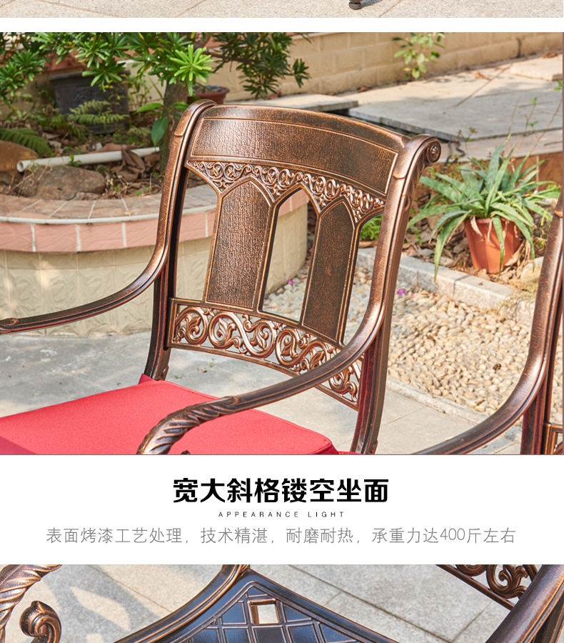 Bàn ghế sân vườn nhôm đúc sơn tĩnh điện nhập khẩu cao cấp được thiết kế để tạo điểm nhấn cho khu vực sân vườn, ban công hoặc không gian ngoài trời.