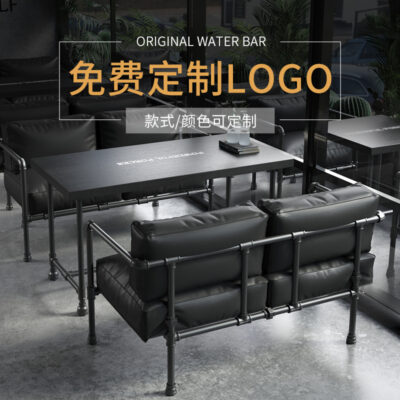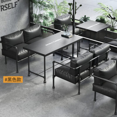 Bàn ghế sắt rèn kết hợp ghế sofa nhà hàng phong cách công nghiệp thương mại cửa hàng bánh hamburger cửa hàng tráng miệng ghế băng ghế tây cafe thẻ ghế