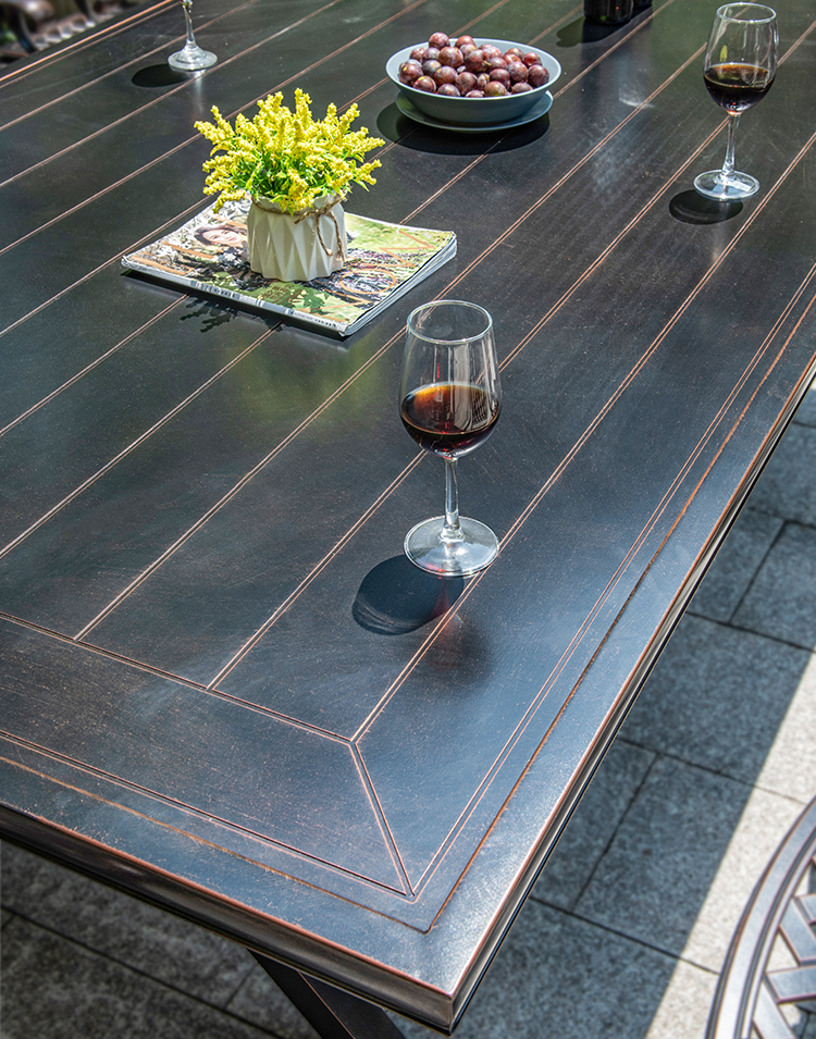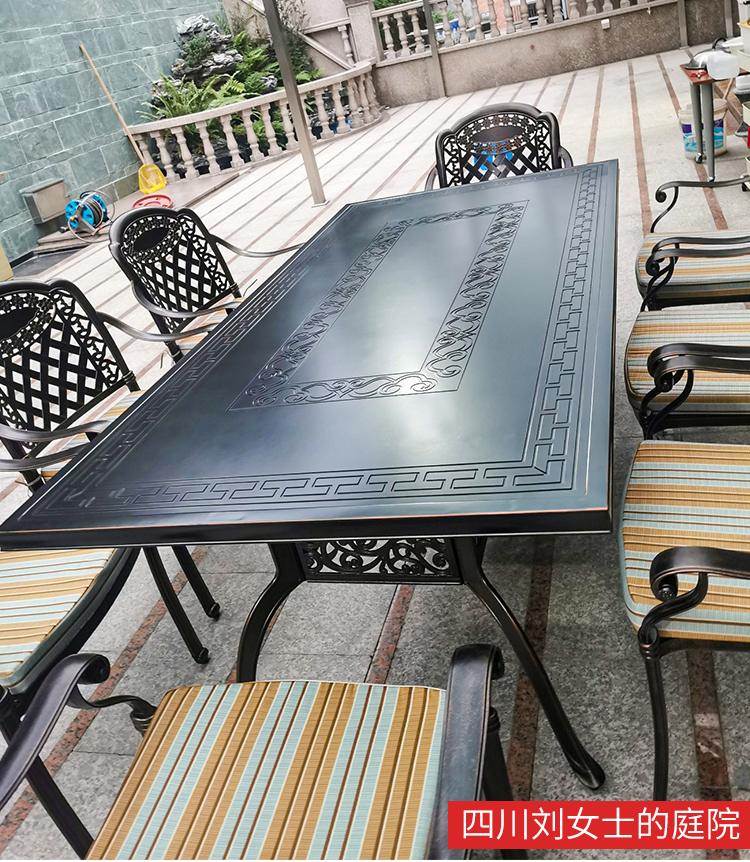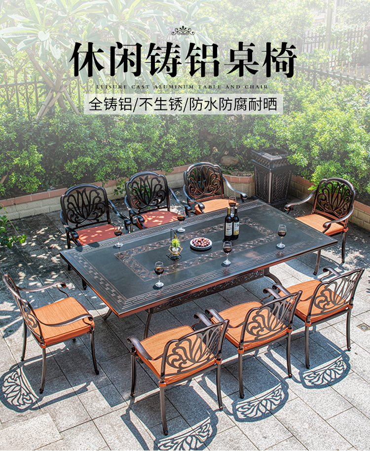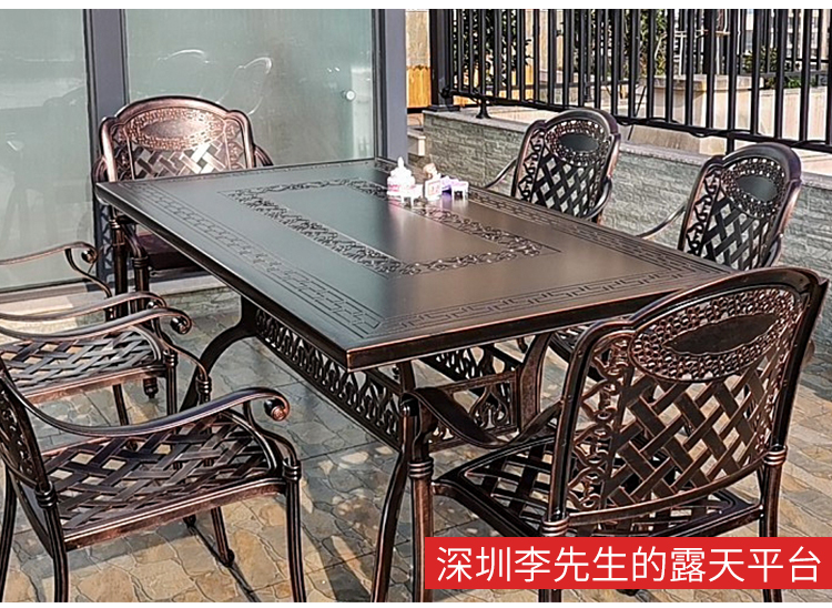 Bàn ghế Shuyi ngoài trời nhôm đúc chạm khắc bàn ghế bàn ăn dài và ghế biệt thự ngoài trời sân vườn sân thượng bàn lớn là lựa chọn lý tưởng cho không gian công cộng, sân vườn hoặc khu đô thị. Sản phẩm giúp nâng cao hình ảnh chuyên nghiệp và sạch đẹp cho môi trường sống.