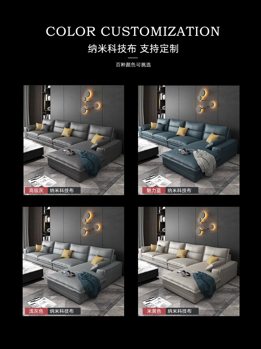- Phân loại màu: Xám cao cấp (vải công nghệ nano nâng cấp thế hệ thứ 8) Màu xanh lam quyến rũ (vải công nghệ nano nâng cấp thế hệ thứ 8) Xám nhạt (vải công nghệ nano nâng cấp thế hệ thứ 8) Màu be (vải công nghệ nano nâng cấp thế hệ thứ 8) Sofa vải công nghệ + bàn cà phê đá phiến Sofa + Bàn cà phê đá phiến + Tủ TV + Tủ ngăn kéo * 2