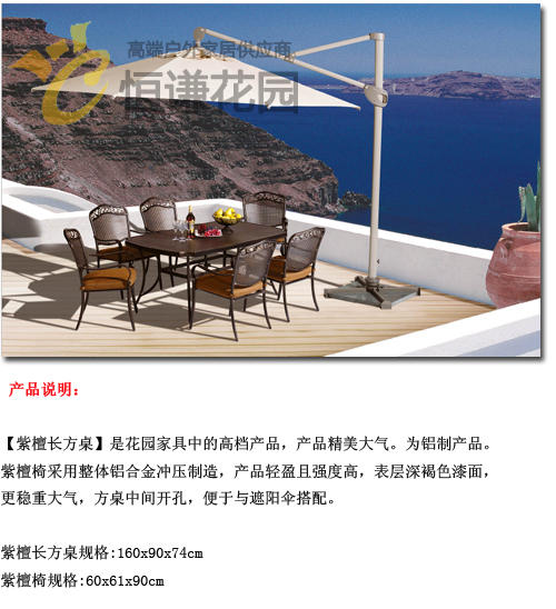 Sản phẩm nổi bật với các đặc điểm: Sunny Garden Nội thất ngoài trời đích thực / Nội thất ngoài trời bằng nhôm đúc / Bàn ghế ngoài trời trong vườn biệt thự / Dòng gỗ đàn hương đỏ