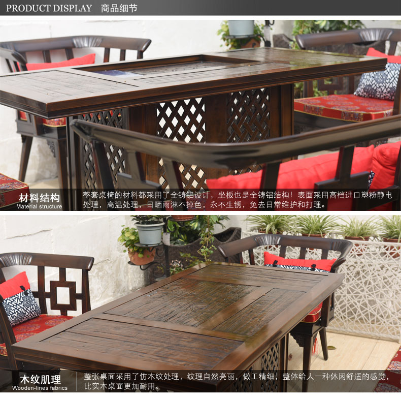 Sản phẩm nổi bật với các đặc điểm: Sunshine ngoài trời bàn ghế nhôm đúc sân vườn sân vườn Kung Fu bàn ghế trà dài bộ ngũ sự hợp kim nhôm nội thất Trung Quốc