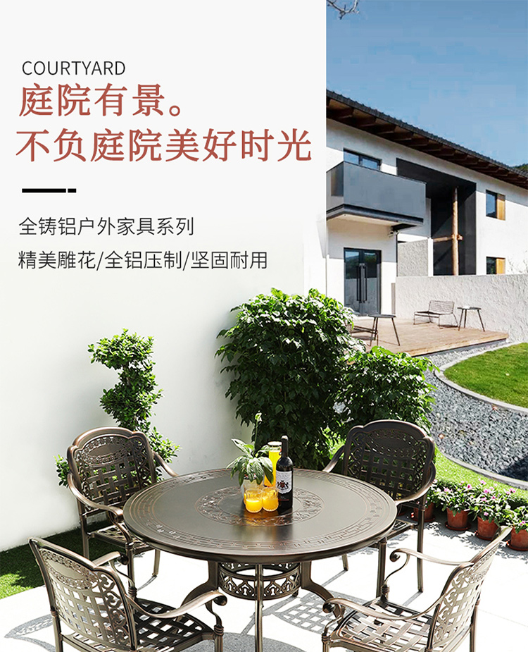 Bàn ghế thư giãn ngoài trời sân nhà bàn ghế nhôm đúc ngoài trời biệt thự ban công sân vườn ngoài trời kết hợp bàn ghế được thiết kế để tạo điểm nhấn cho khu vực sân vườn, ban công hoặc không gian ngoài trời.