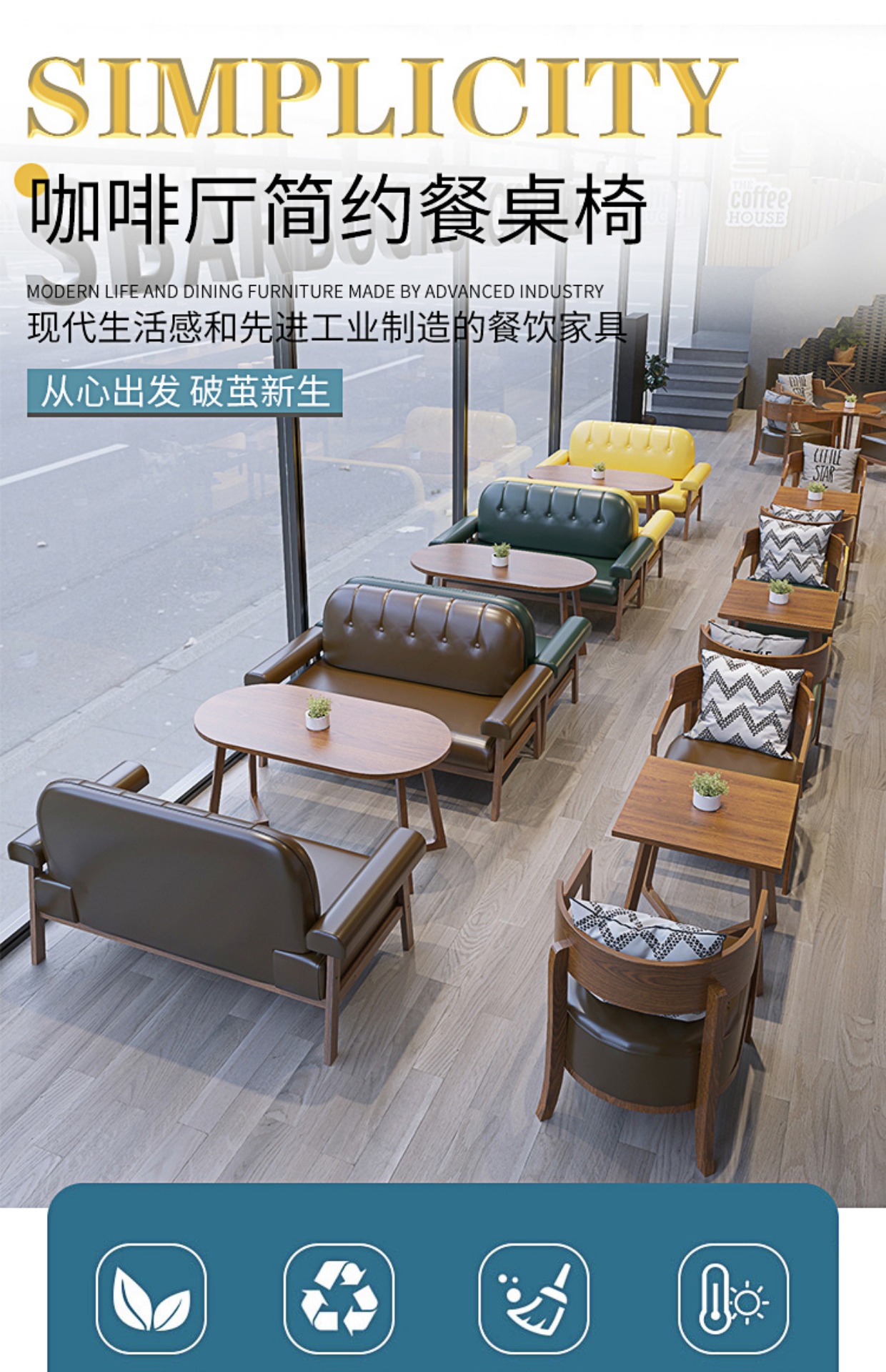 Bàn ghế Thương lượng Đồ ăn phương Tây Quán cà phê Ghế sofa – BGCF-295 – Mã sản phẩm BGCF-295. Thương lượng Đồ ăn phương Tây Quán cà phê Ghế sofa đôi Ghế thư giãn Tiếp tân Quầy bar Bánh mì thịt rắn Burger tráng miệng Cửa hàng trà sữa Bàn ghế Kết hợp