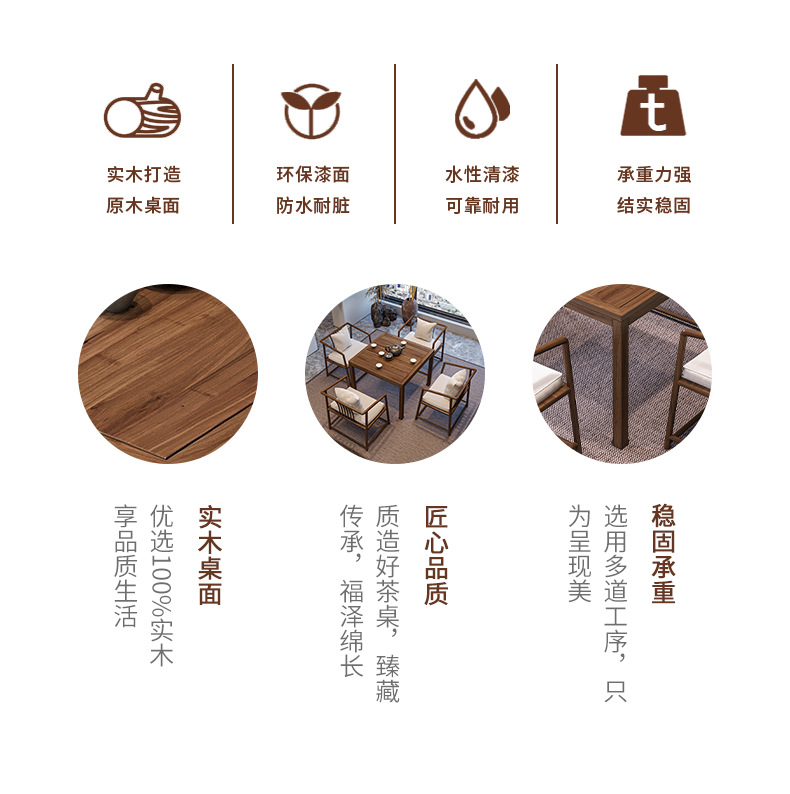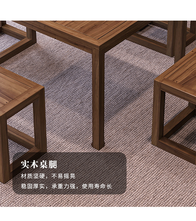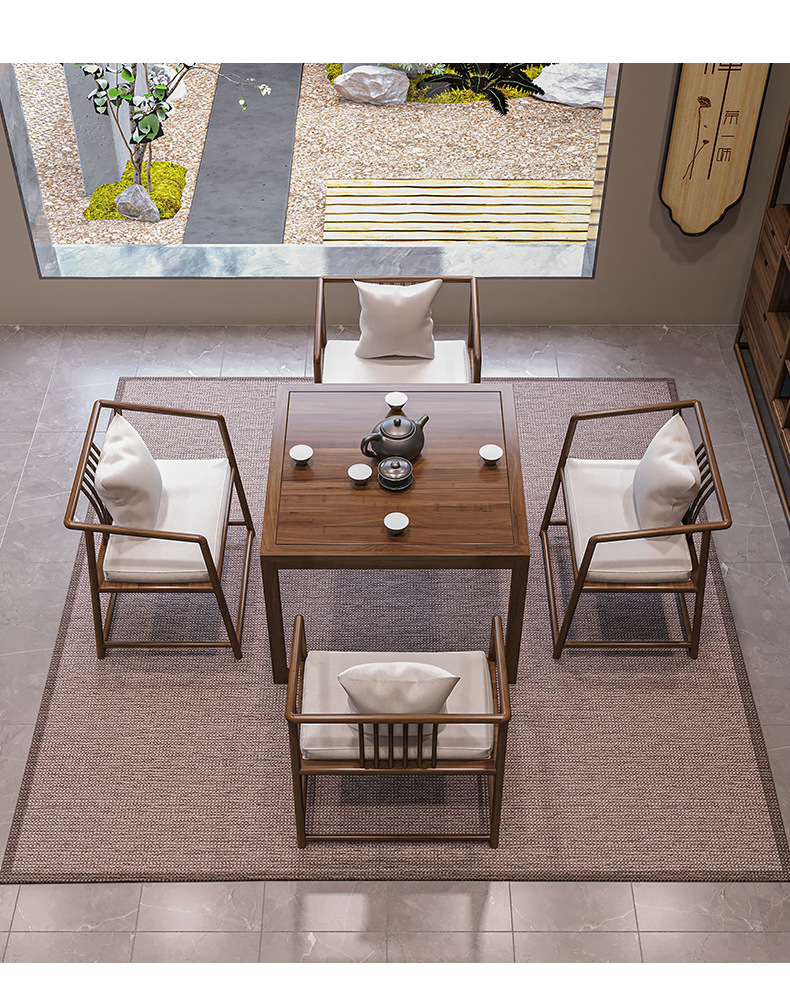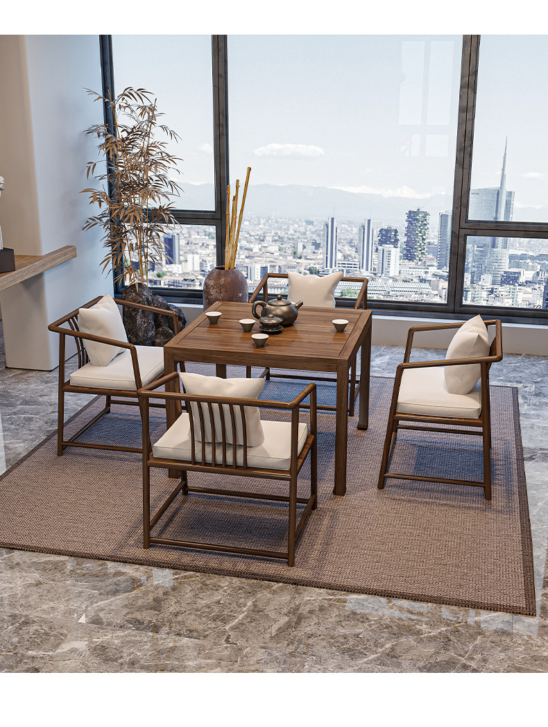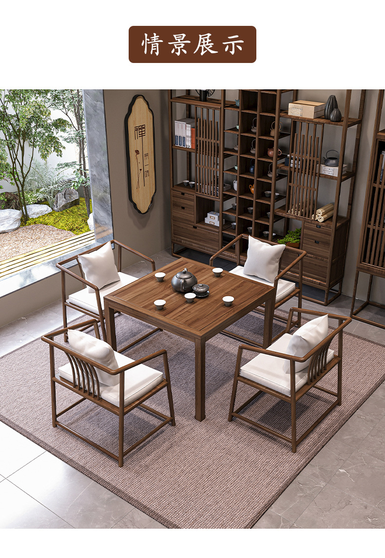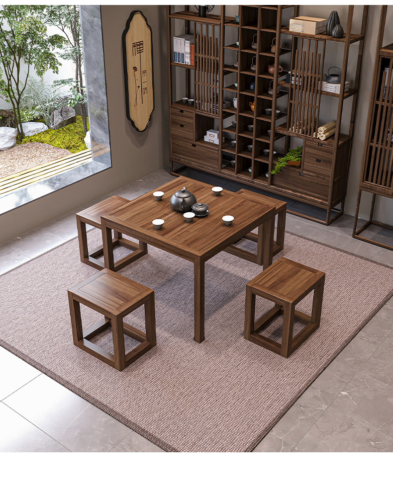 Bàn ghế trà gỗ phong cách Trung Quốc mới kết hợp bàn vuông log Bát bất tử bàn cờ bàn chơi bài bàn vuông bàn cà phê bàn