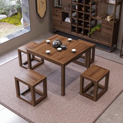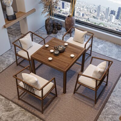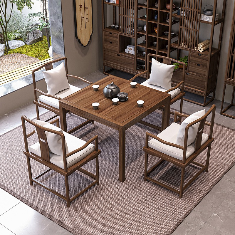 Bàn ghế trà gỗ phong cách Trung Quốc mới kết hợp bàn vuông log Bát bất tử bàn cờ bàn chơi bài bàn vuông bàn cà phê bàn