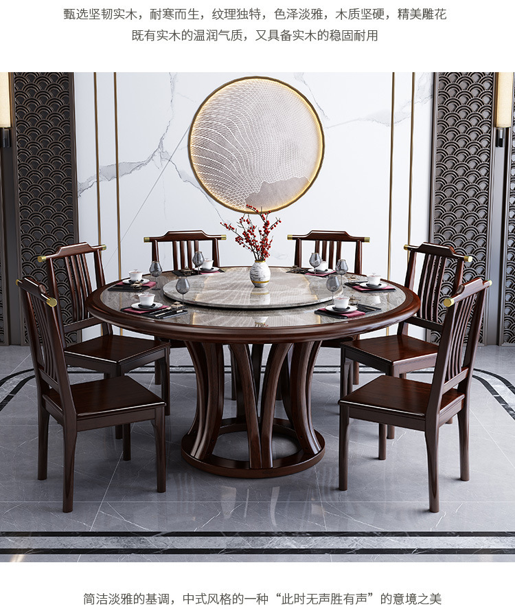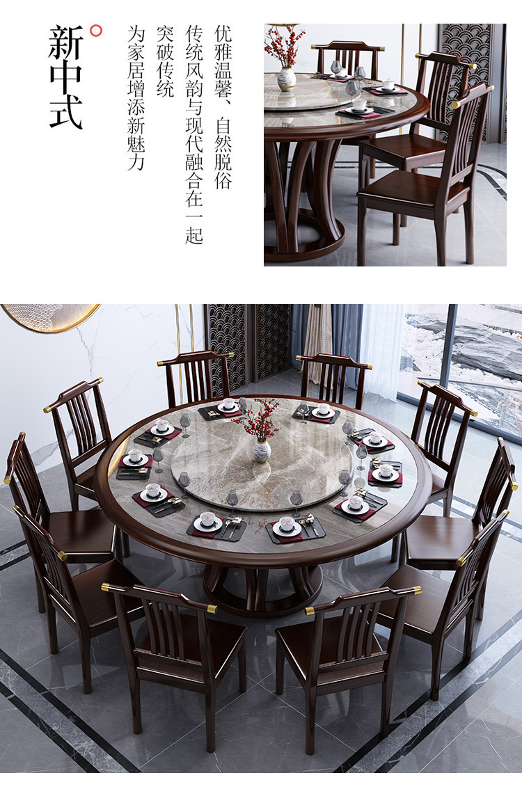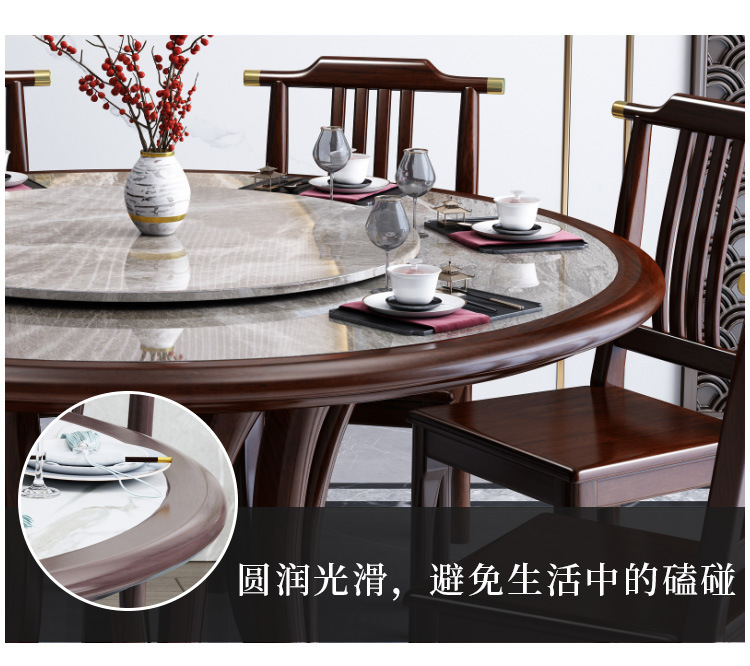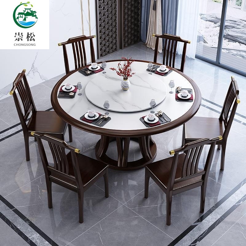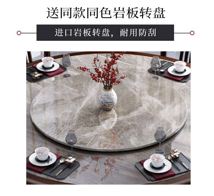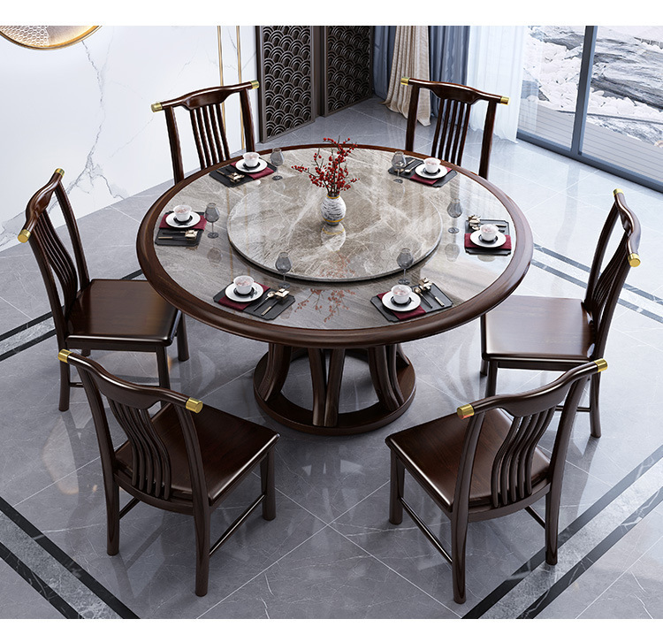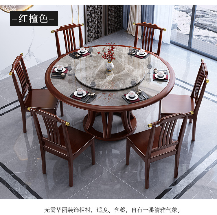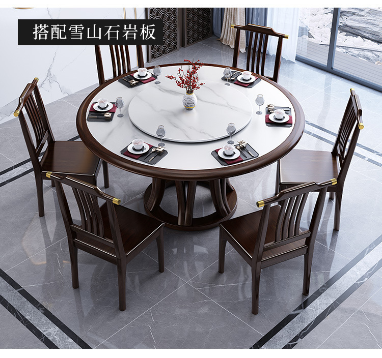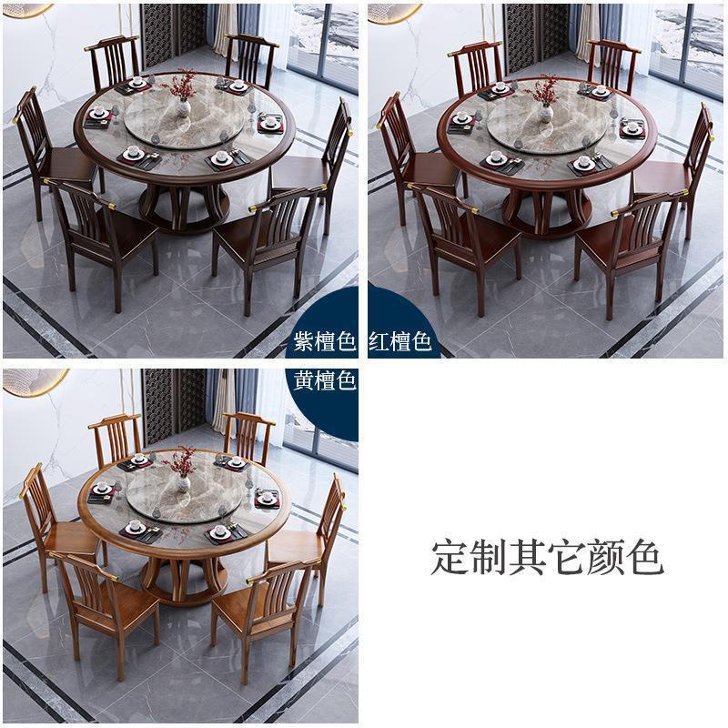 Bàn ghế tròn bằng đá phiến kiểu Trung Quốc mới kết hợp bàn ghế đơn giản kích thước gia đình Bàn ăn tròn bằng gỗ nguyên khối