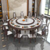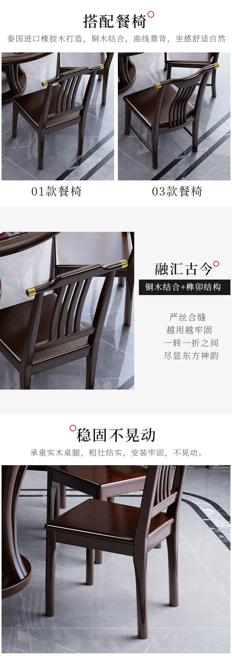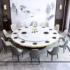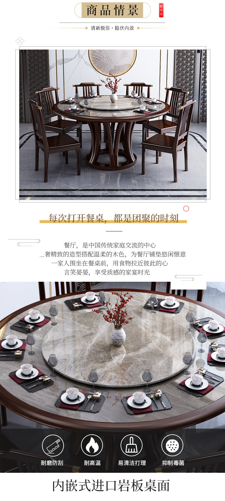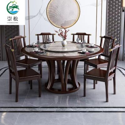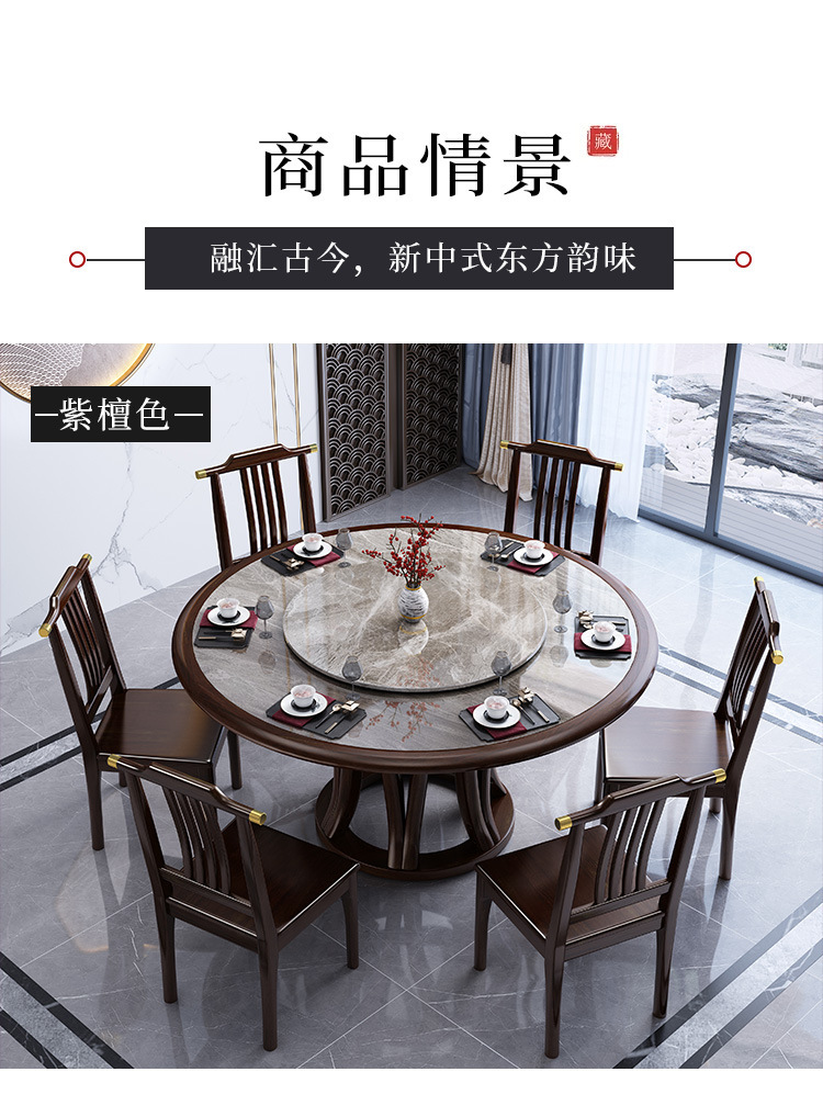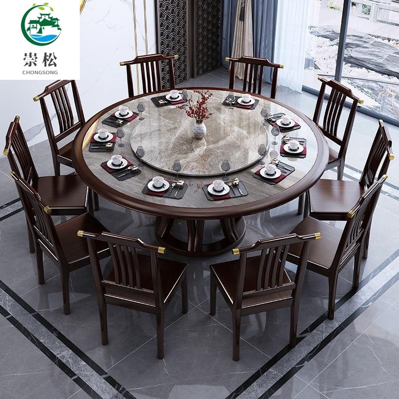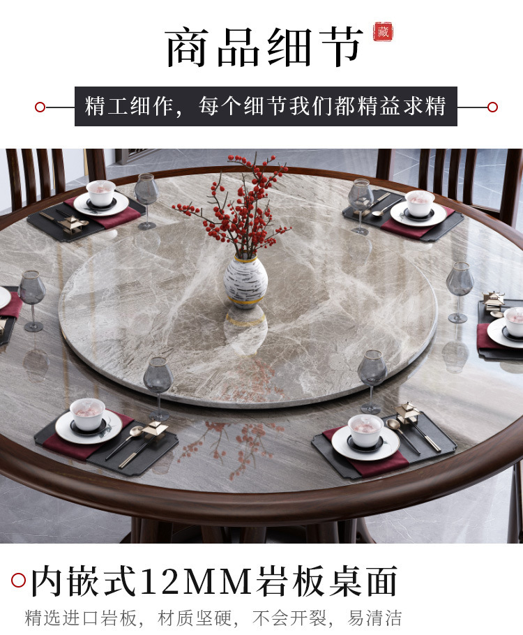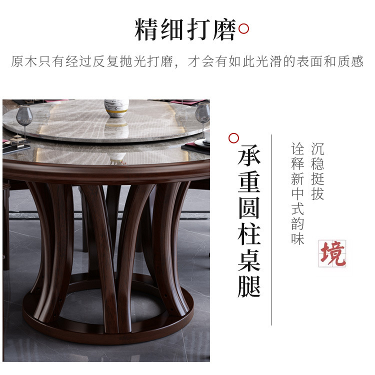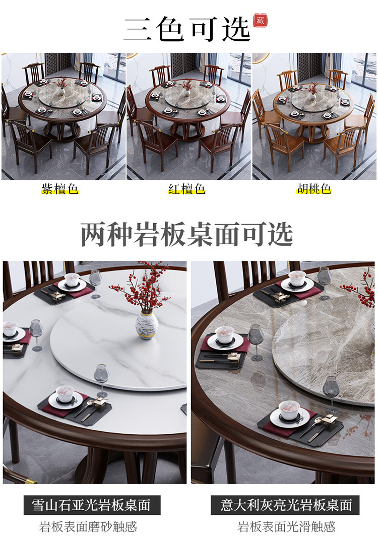 Bàn ghế tròn bằng đá phiến kiểu Trung Quốc mới kết hợp bàn ghế đơn giản kích thước gia đình Bàn ăn tròn bằng gỗ nguyên khối