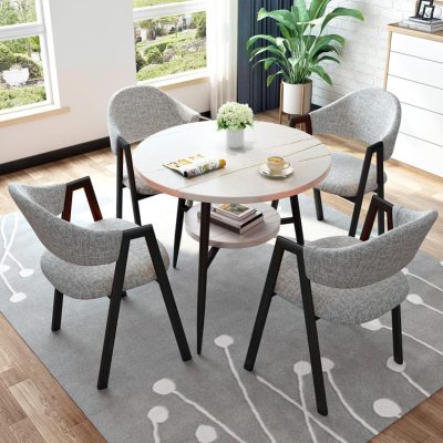 Bàn ghế Văn phòng bán hàng hiện đại tiếp khách và gặp gỡ – BGCF-642 – Mã sản phẩm BGCF-642. Văn phòng bán hàng hiện đại tiếp khách và gặp gỡ khách để thảo luận bàn ghế kết hợp văn phòng giản dị bàn tròn nhỏ giả gỗ đặc bàn ăn