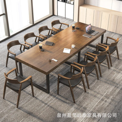 Bàn ghế văn phòng bằng gỗ nguyên khối hiện đại kết hợp bàn hội nghị đào tạo nhân viên văn phòng đơn giản bàn dài LOFT bàn máy tính
