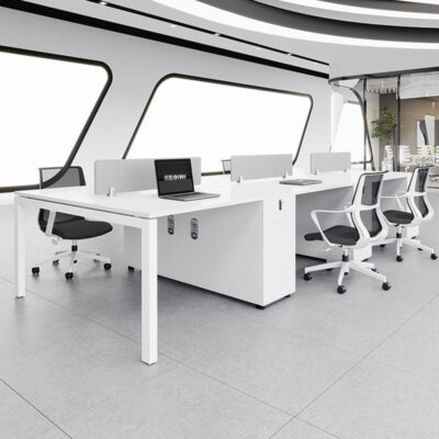 Bàn ghế văn phòng kết hợp nội thất công cộng đơn giản 2/4/6 người bàn nhân viên nhân viên văn phòng màu trắng