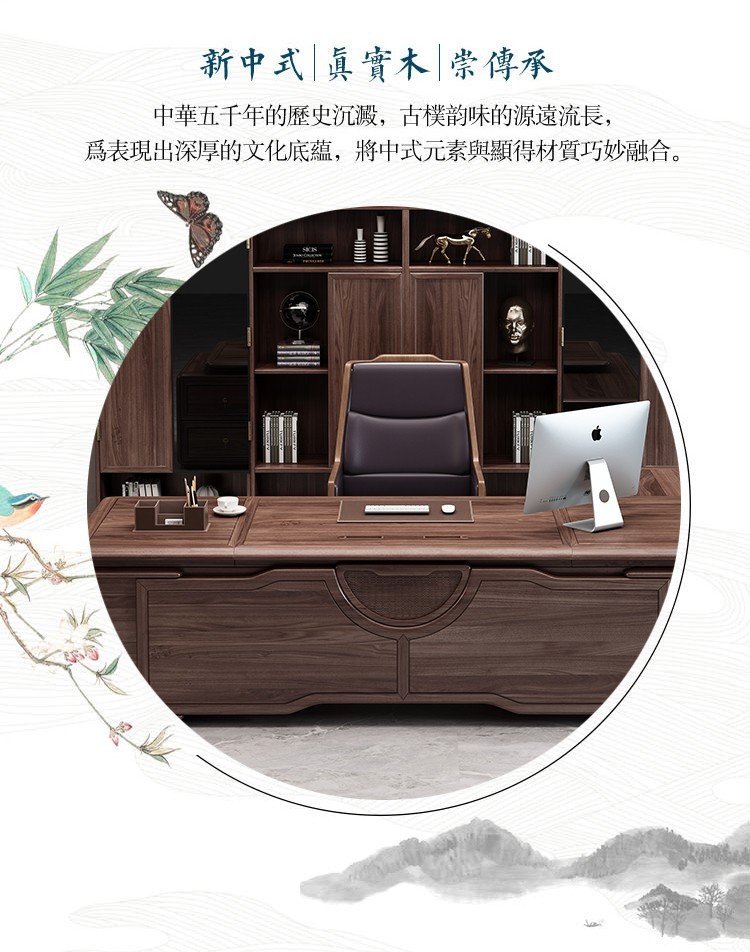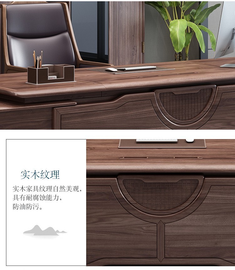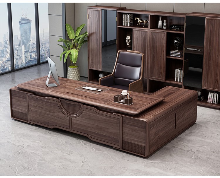 Bàn ghế văn phòng sếp kiểu Trung Quốc mới kết hợp bàn ghế giám đốc bằng gỗ nguyên khối hiện đại bàn chủ tịch quản lý nội thất văn phòng tại chỗ