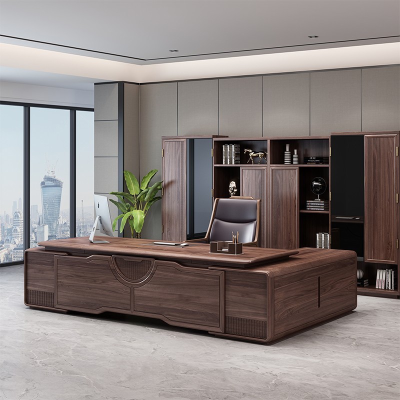 Bàn ghế văn phòng sếp kiểu Trung Quốc mới kết hợp bàn ghế giám đốc bằng gỗ nguyên khối hiện đại bàn chủ tịch quản lý nội thất văn phòng tại chỗ