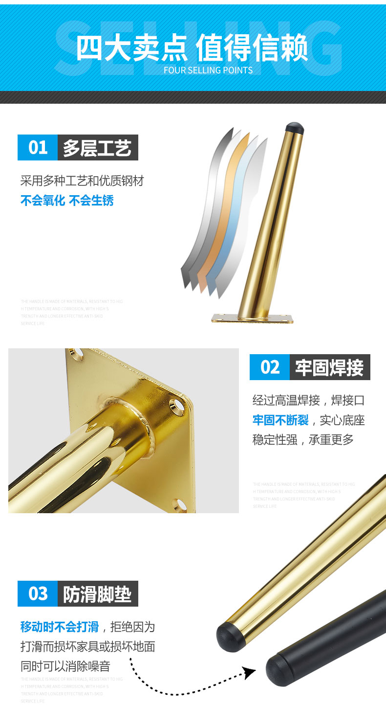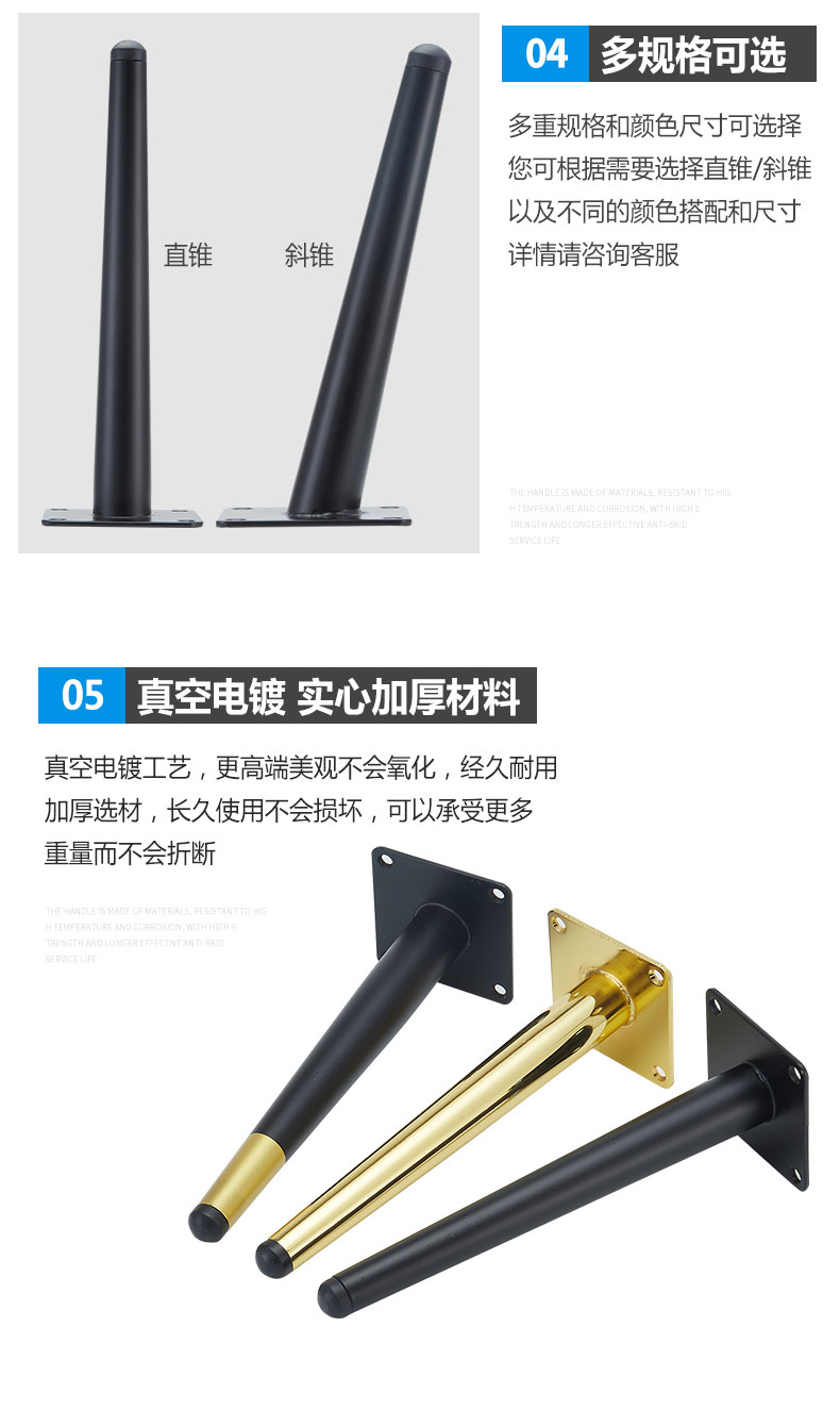 Bàn ghế vàng chân sofa chân tủ bàn cà phê chân bàn kim loại chân tủ tivi chân thẳng nghiêng hình nón ống tròn