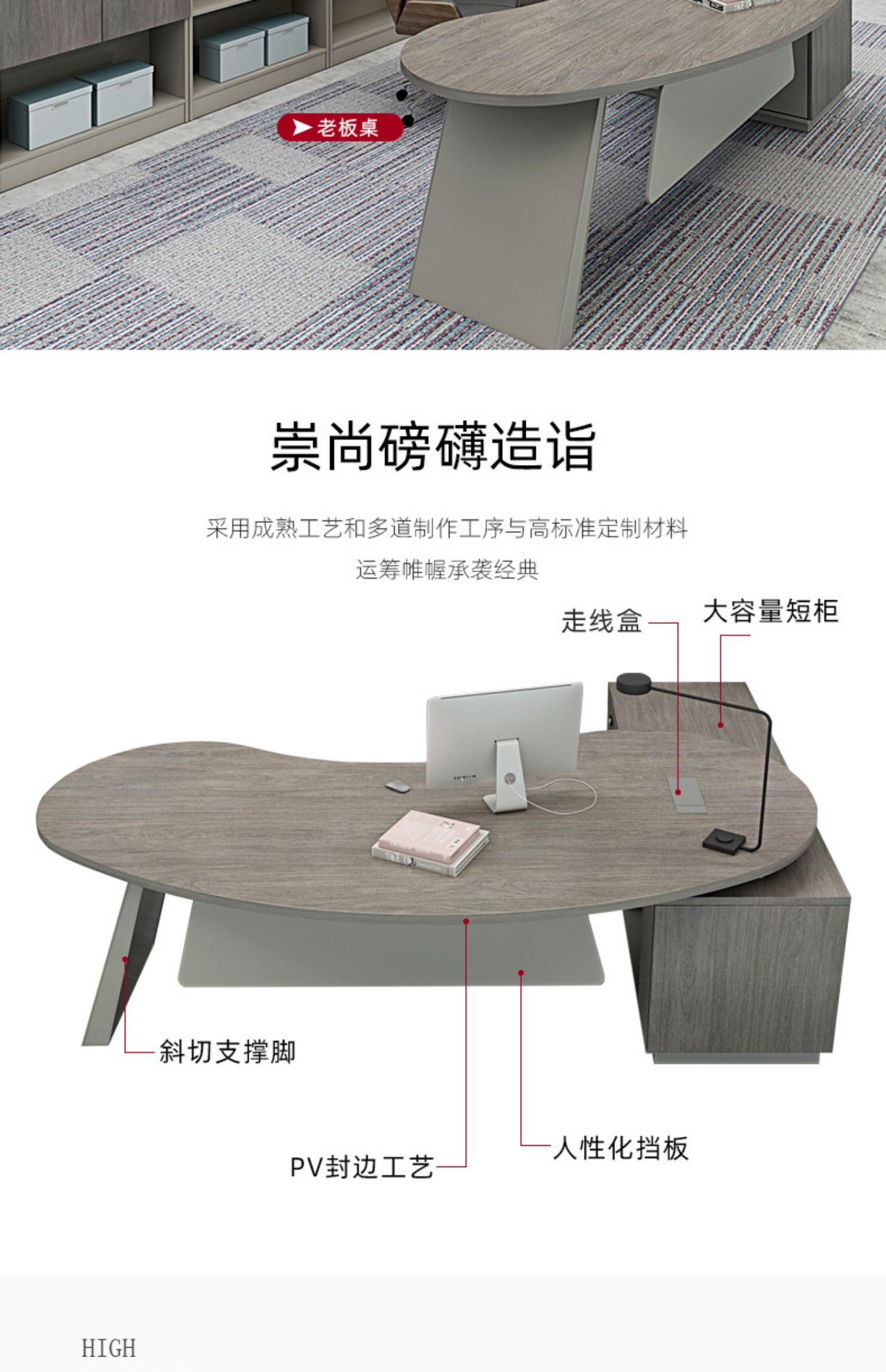 Bàn giám đốc đơn giản hiện đại chủ tịch văn phòng giám sát cong giám sát bàn điều hành khác nhau đồ nội thất kết hợp bàn ghế
