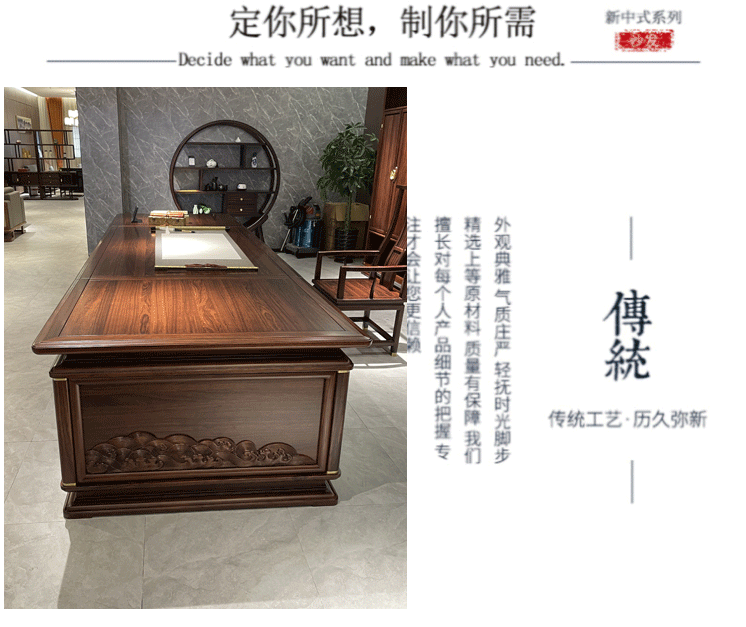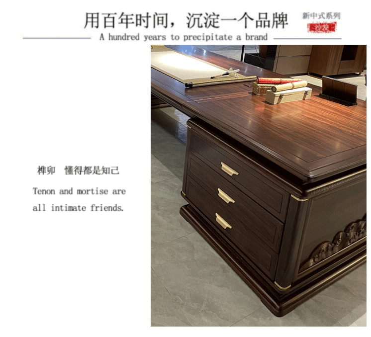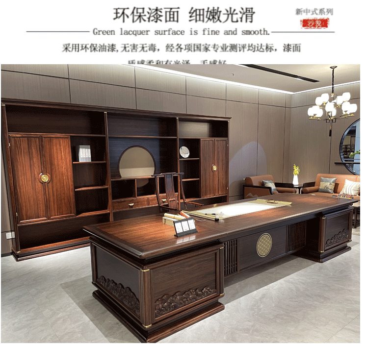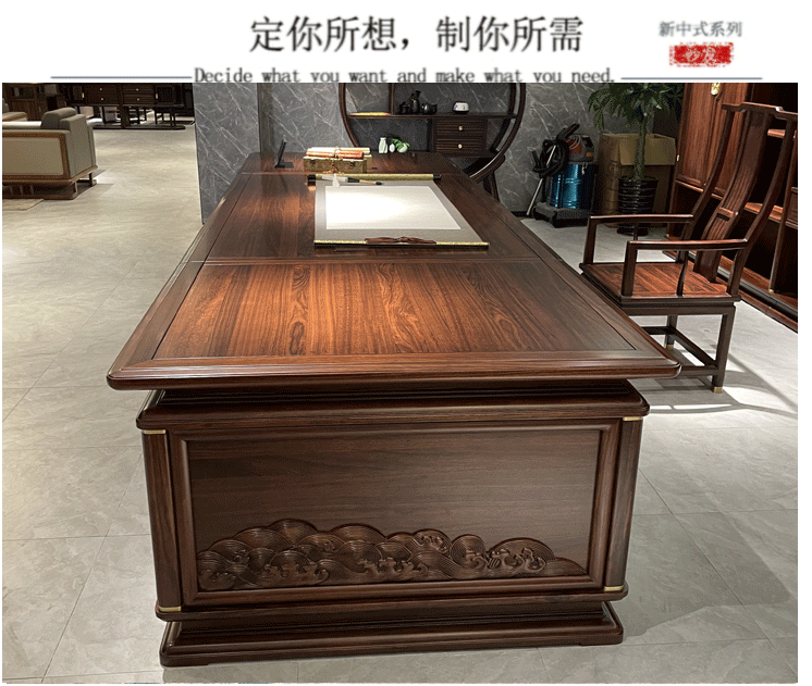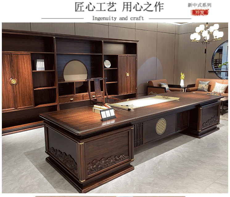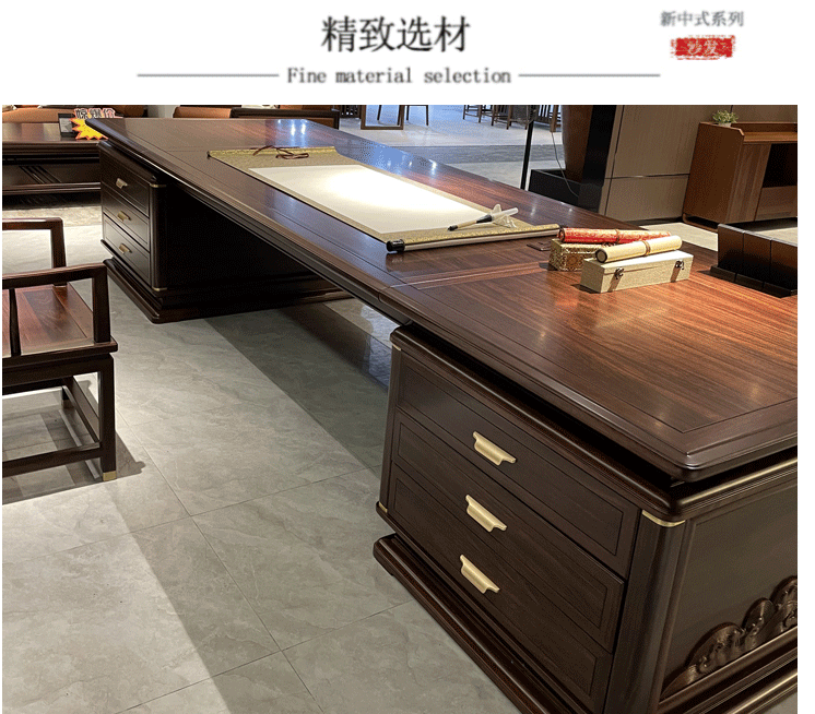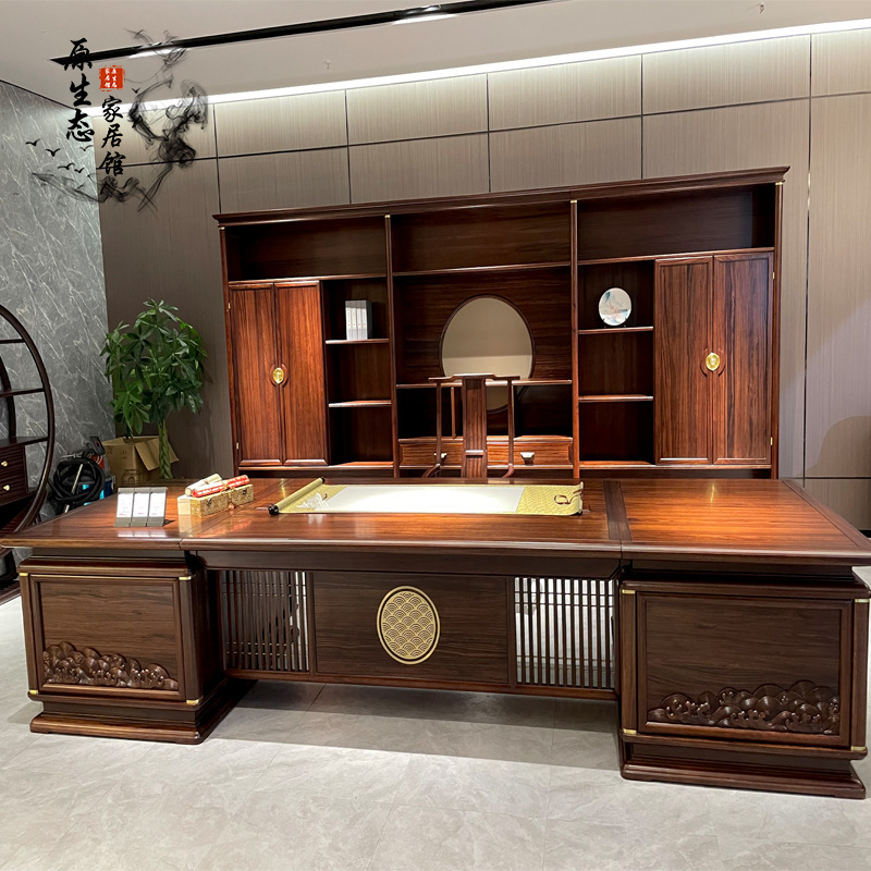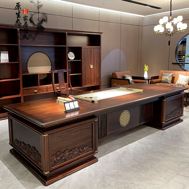 Bàn giám đốc kiểu Trung Quốc mới bàn làm việc bằng gỗ nguyên khối bàn điều hành đơn giản bàn giám đốc điều hành bàn tổng thống kết hợp bàn ghế văn phòng