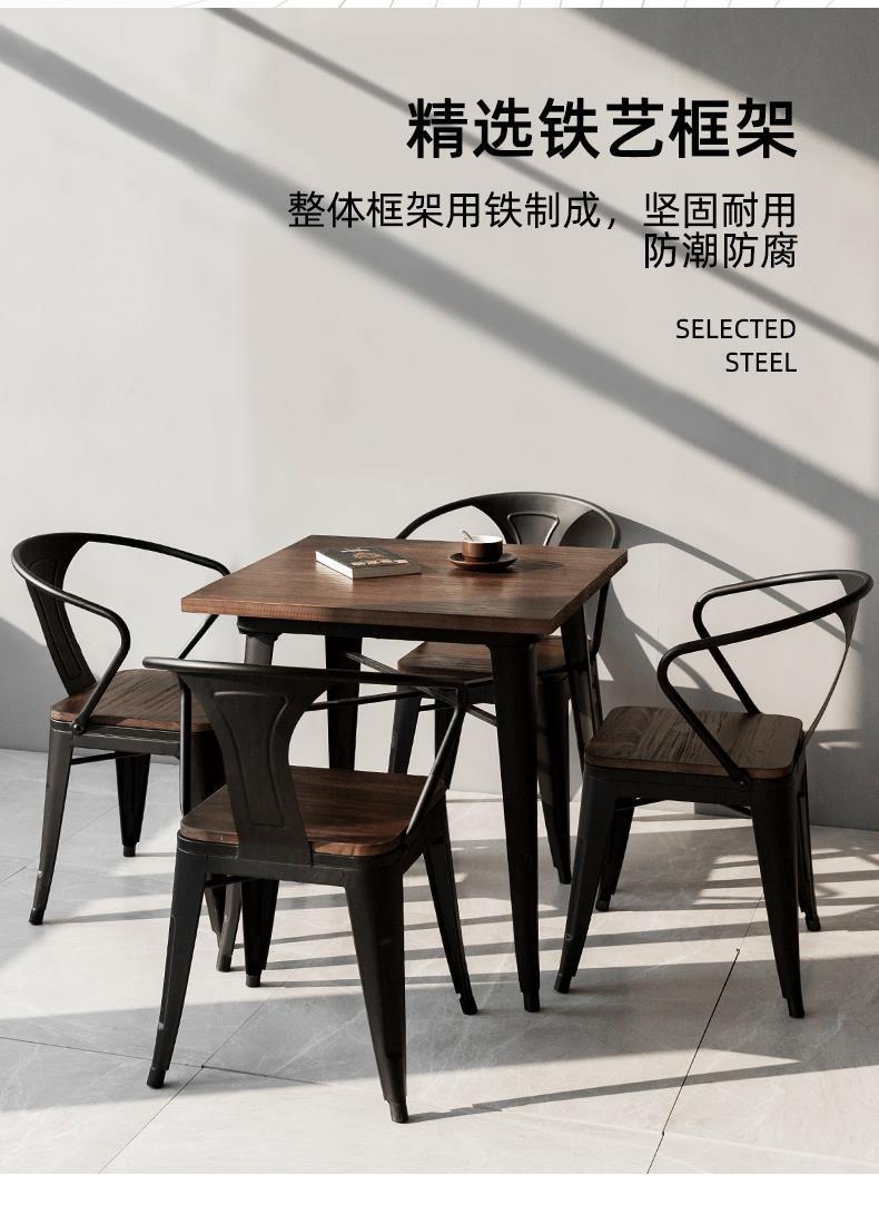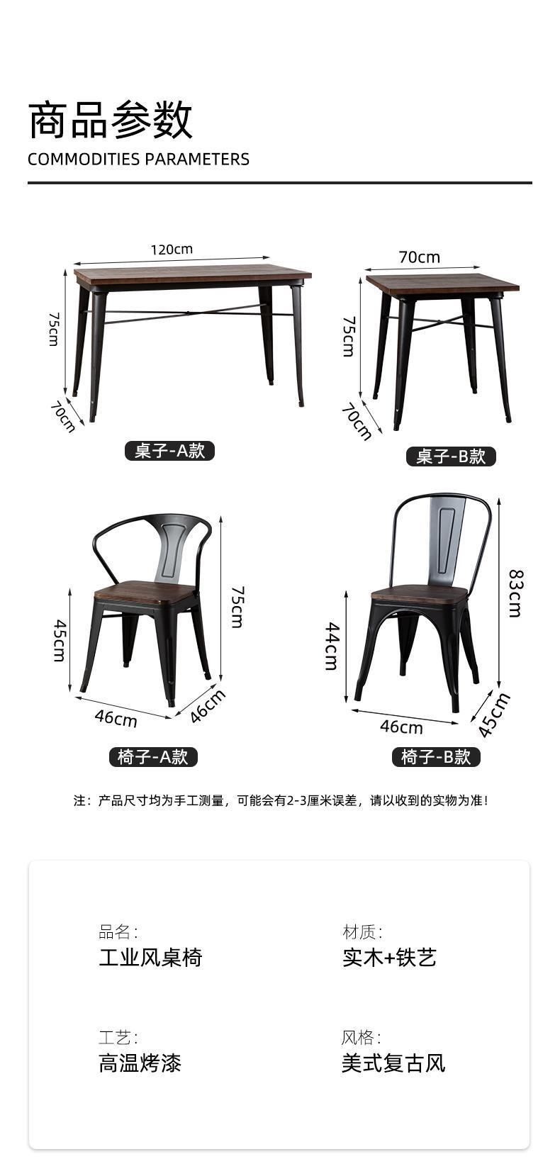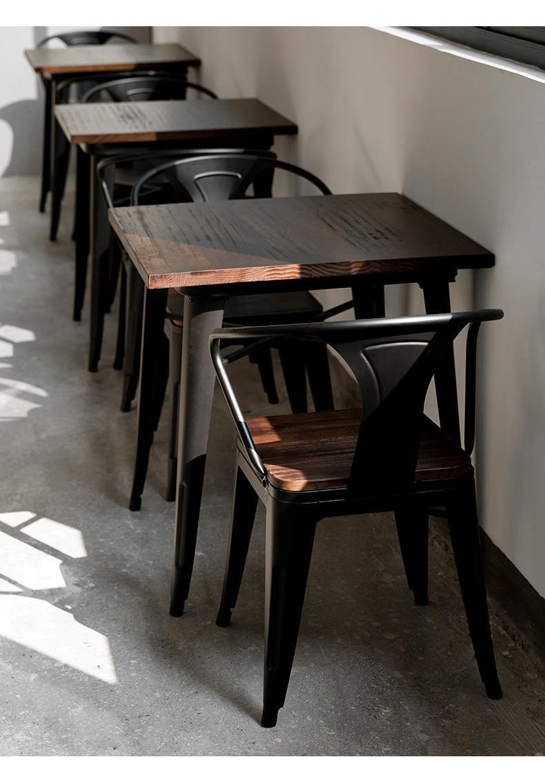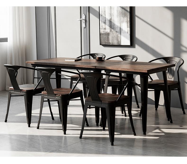 Bàn gỗ nguyên khối của Mỹ nhà hàng tối giản hiện đại cafe bar bàn ăn phong cách công nghiệp Mỹ bàn ghế sắt rèn kết hợp