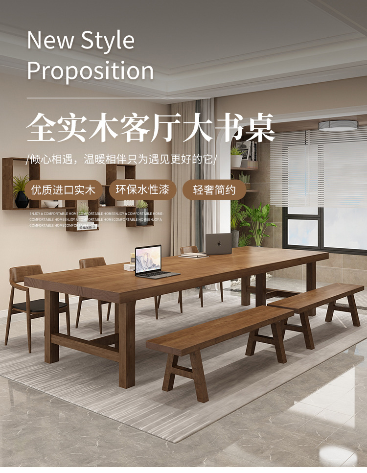 Bàn gỗ nguyên khối phòng khách bàn làm việc dài máy tính bàn làm việc đơn giản hiện đại nhiều người học văn phòng bàn đàm phán