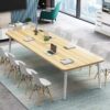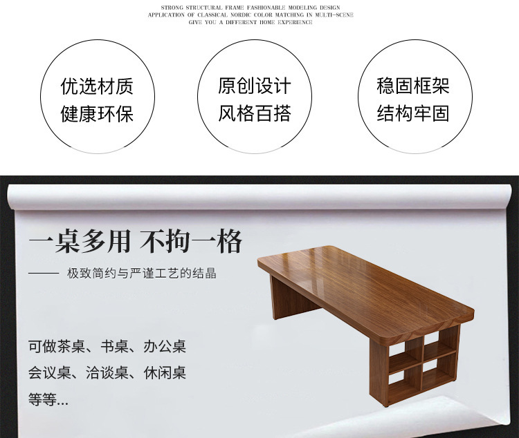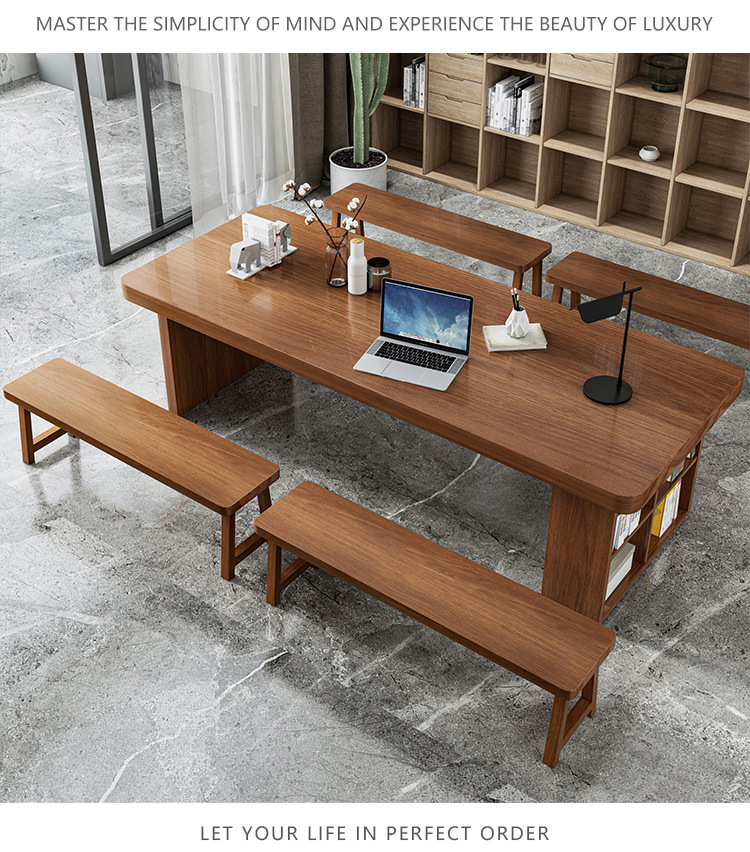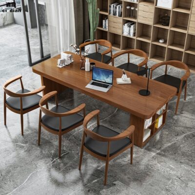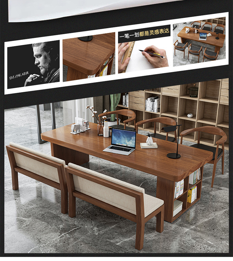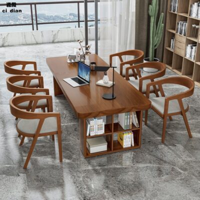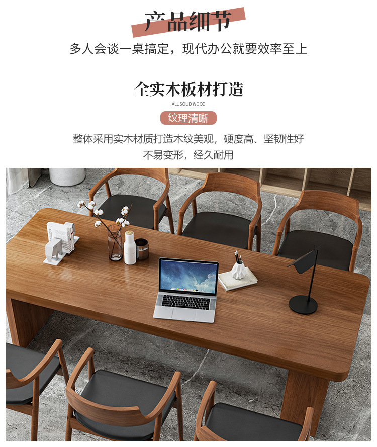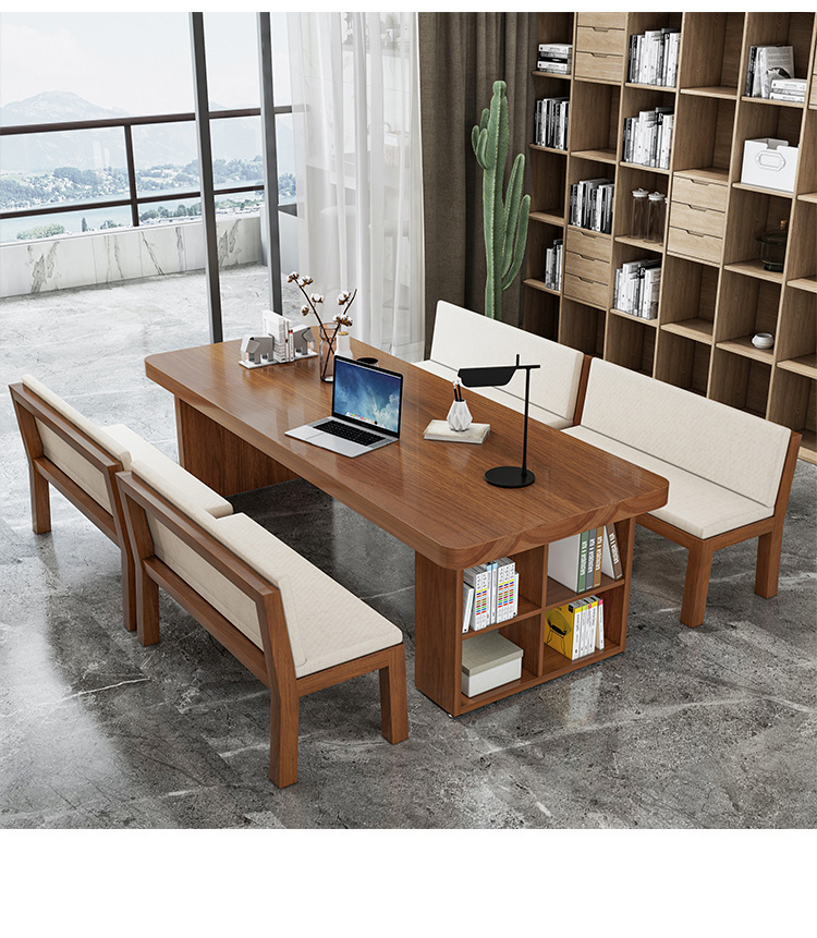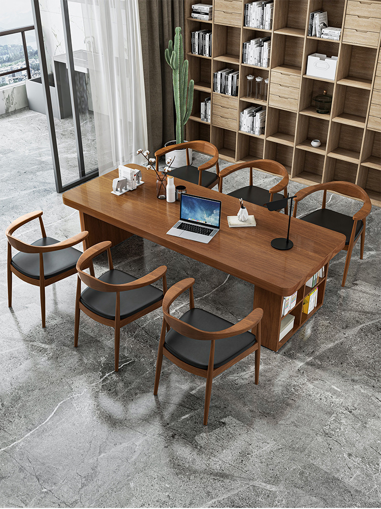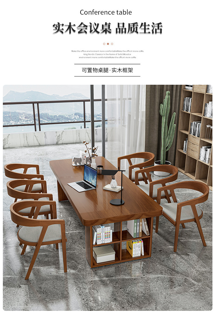 Bàn gỗ nguyên khối tối giản hiện đại, bàn hội nghị đàm phán nhân viên văn phòng sáng tạo, bàn dài có tủ, bàn gỗ