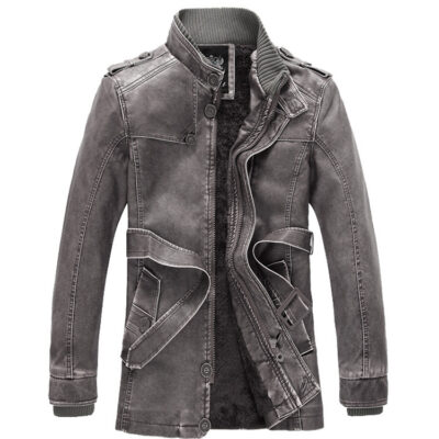 Bán hàng trực tiếp tại nhà máy ở Châu Âu và Châu Mỹ, áo khoác da PU có chiều dài vừa phải, cá tính, áo khoác da nam đi mô tô đã giặt sạch cộng với áo khoác lông cừu