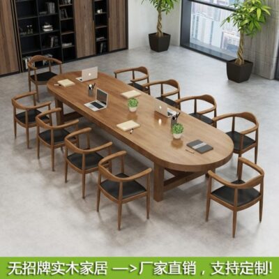 Bàn hình bầu dục Bàn hội nghị bàn ăn gỗ nguyên khối đào tạo văn phòng phòng tiếp tân đơn giản kết hợp bàn ghế dài