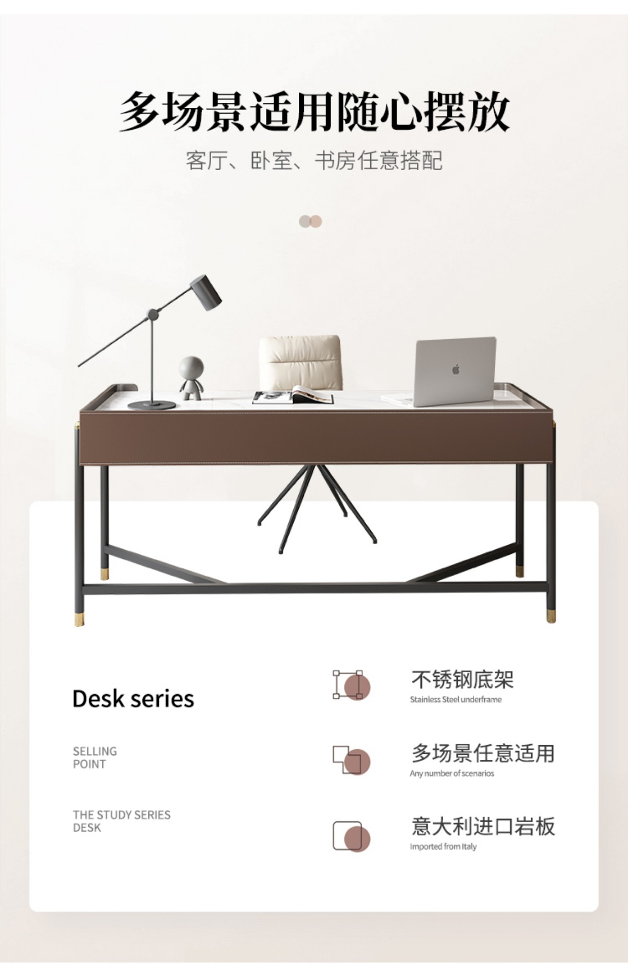 Bàn học bàn làm việc bằng đá tối giản kiểu Ý Bắc Âu hiện đại tối giản ánh sáng máy tính sang trọng căn hộ nhỏ bàn viết văn phòng bàn và ghế