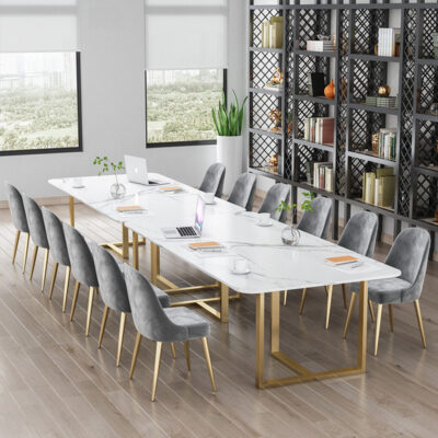 Bàn hội nghị bằng đá cẩm thạch Bắc Âu, bàn văn phòng hình chữ nhật bằng đá phiến hiện đại đơn giản, bàn ghế tiếp tân và đàm phán sang trọng nhẹ nhàng kết hợp
