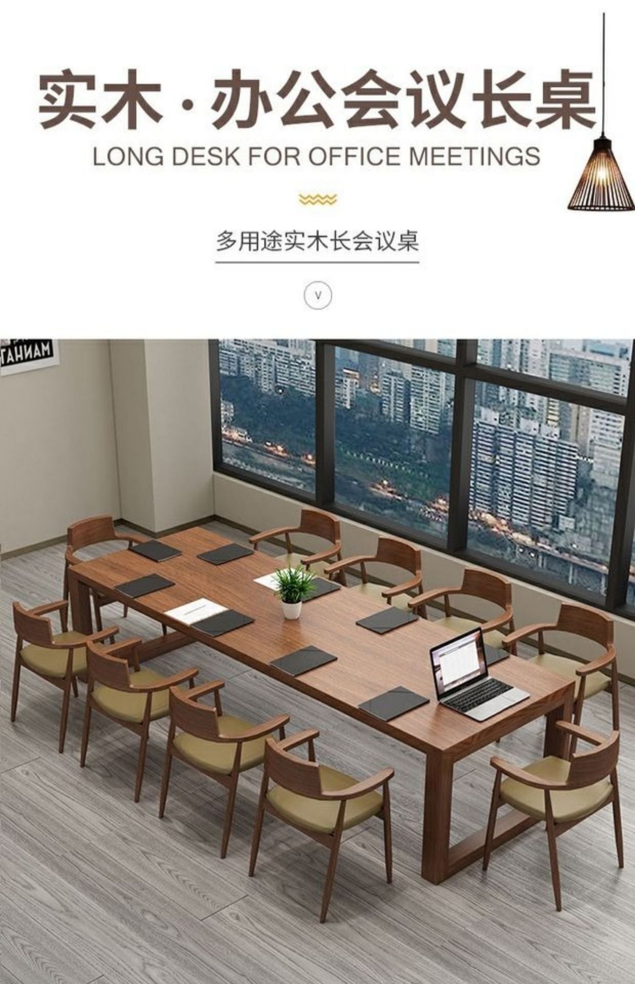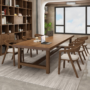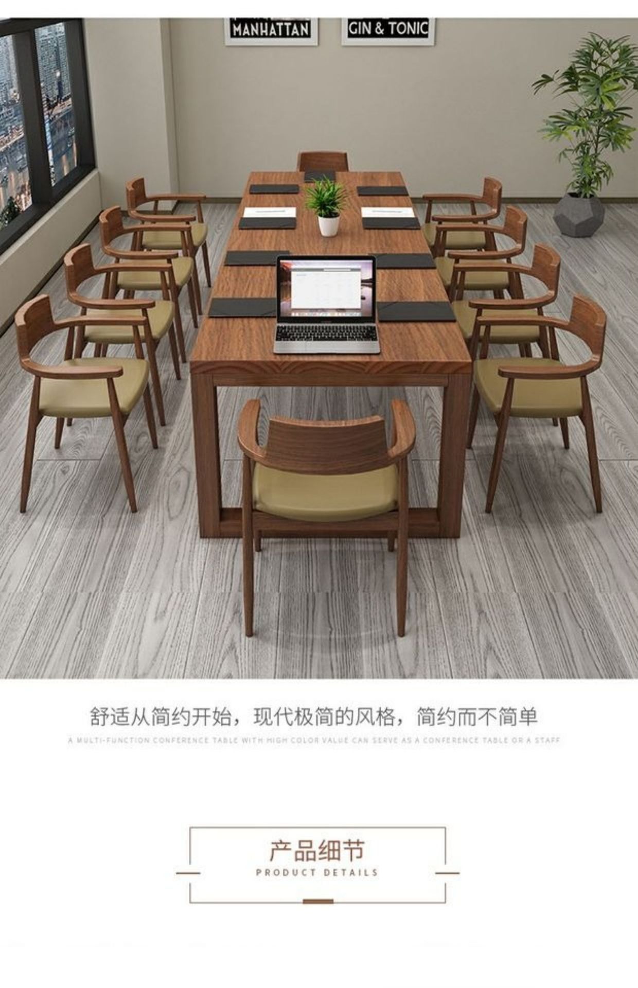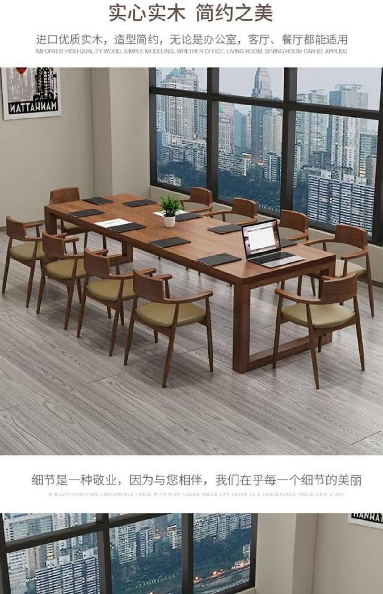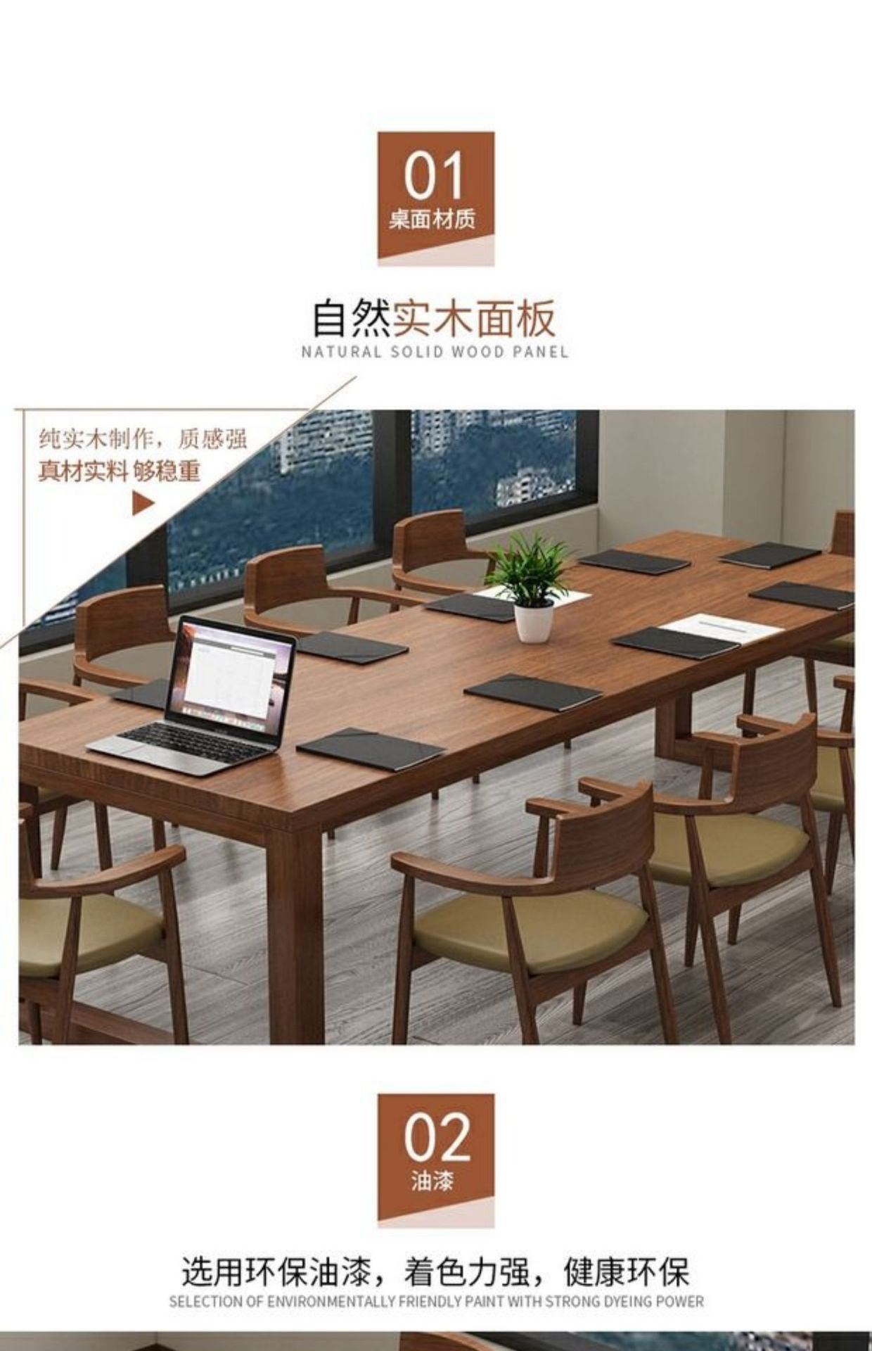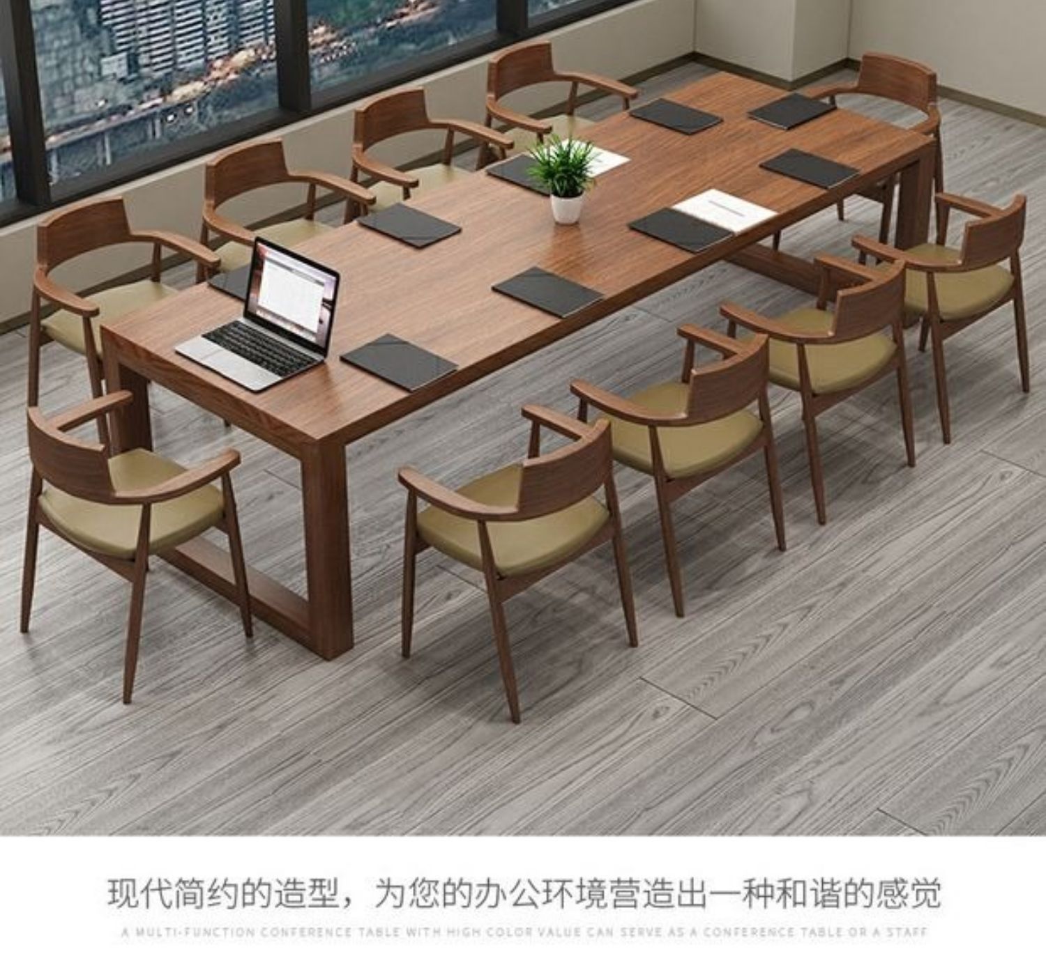 Bàn hội nghị bằng gỗ nguyên khối kết hợp bàn văn phòng và ghế đơn giản hiện đại bàn dài nhiều người màu óc chó bàn đàm phán bảng lớn