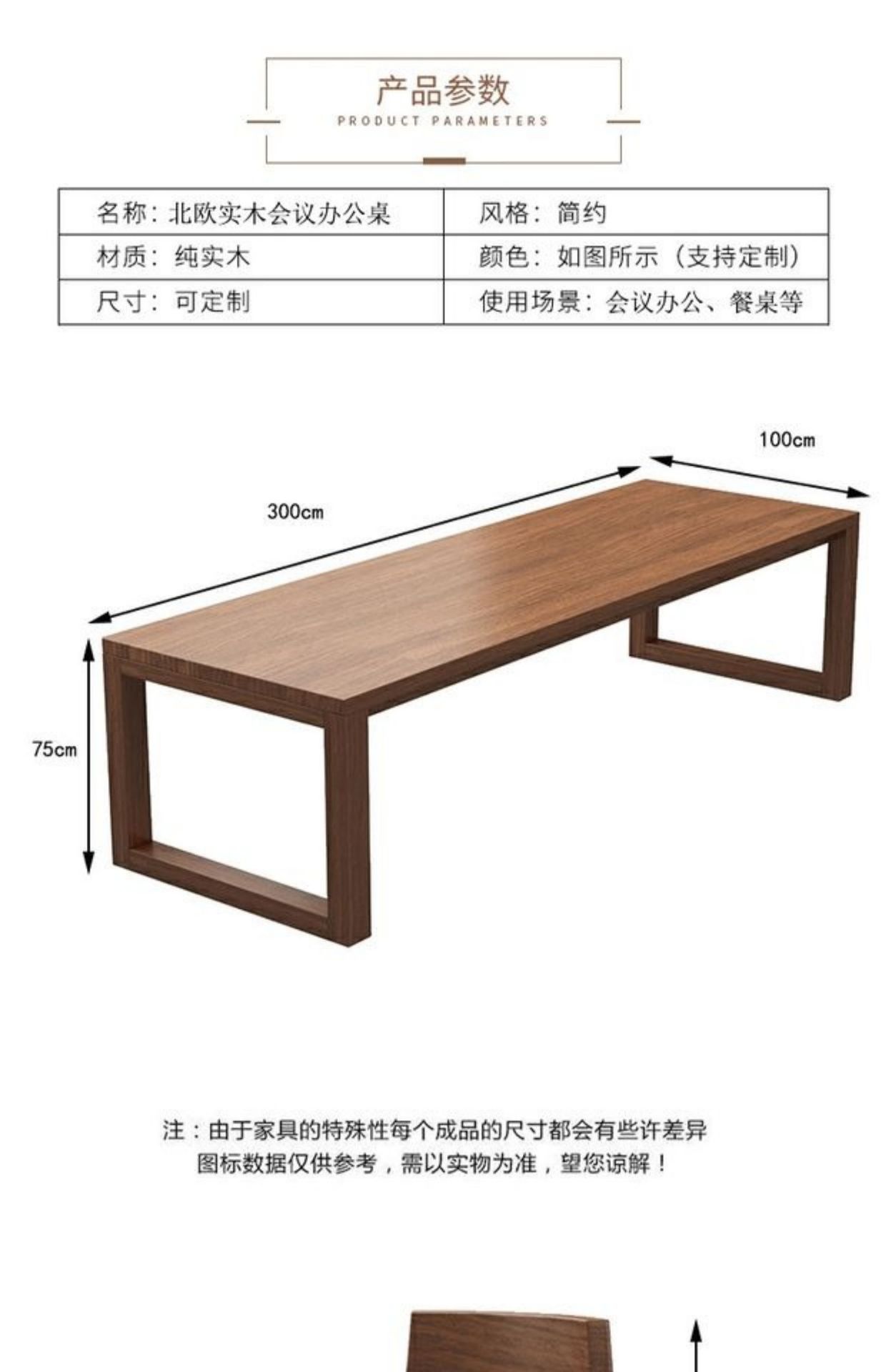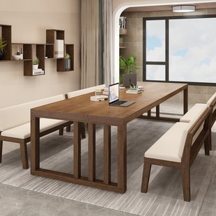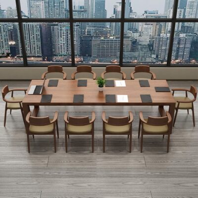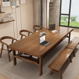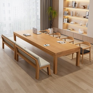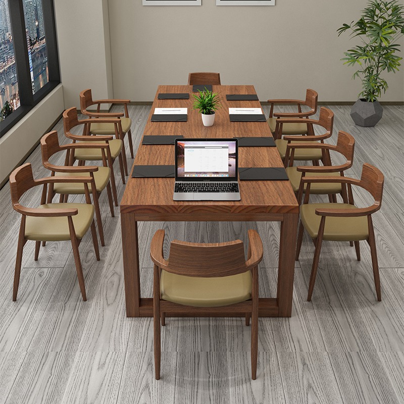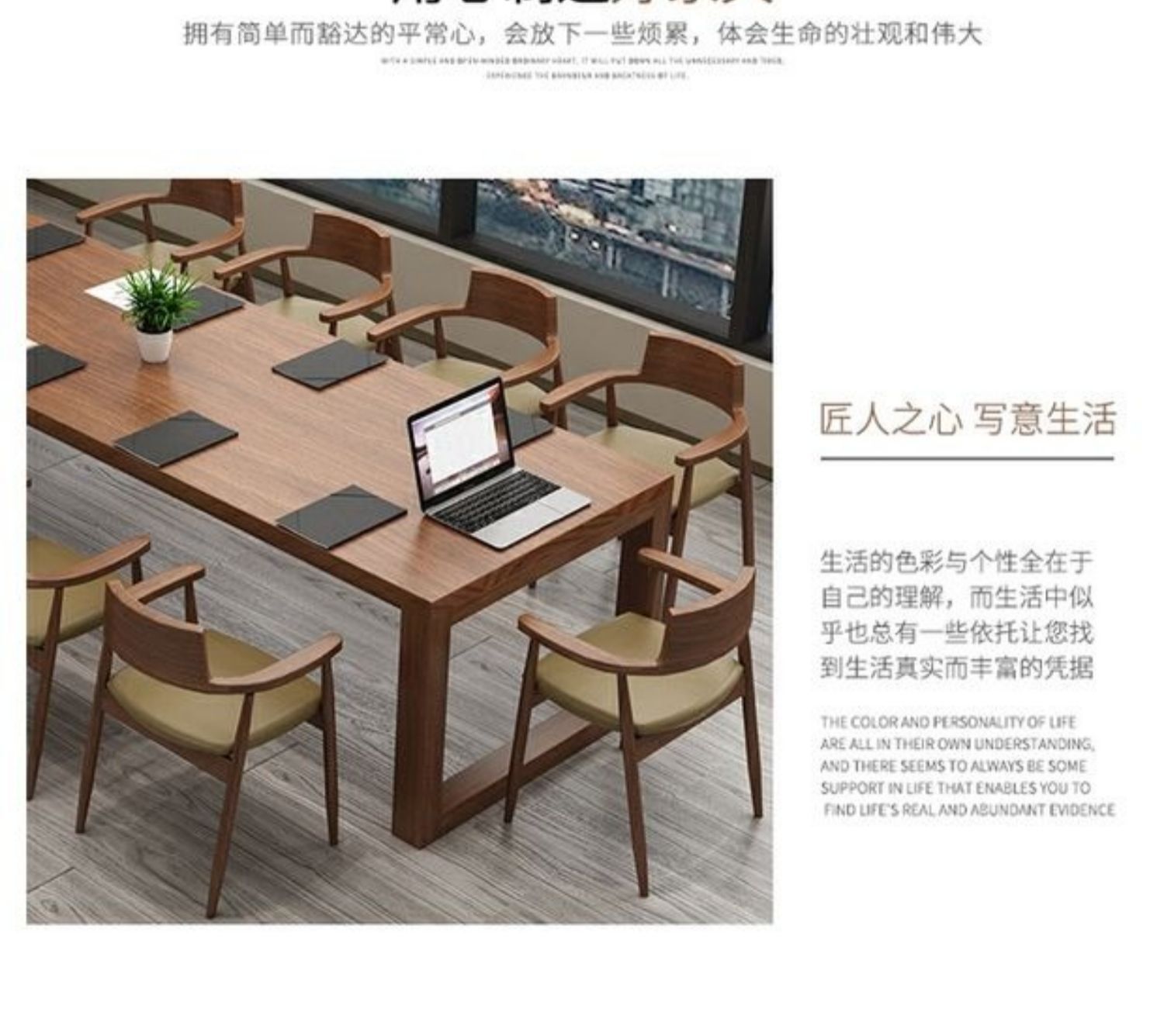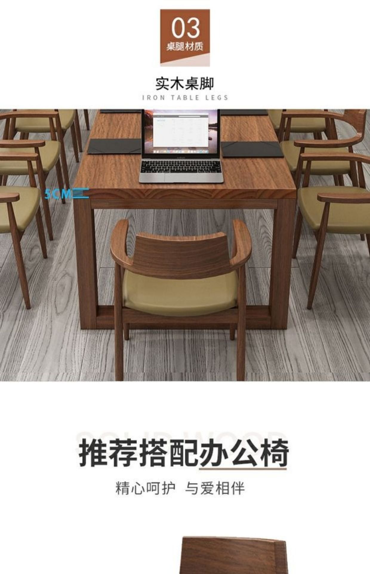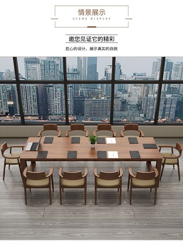 Bàn hội nghị bằng gỗ nguyên khối kết hợp bàn văn phòng và ghế đơn giản hiện đại bàn dài nhiều người màu óc chó bàn đàm phán bảng lớn