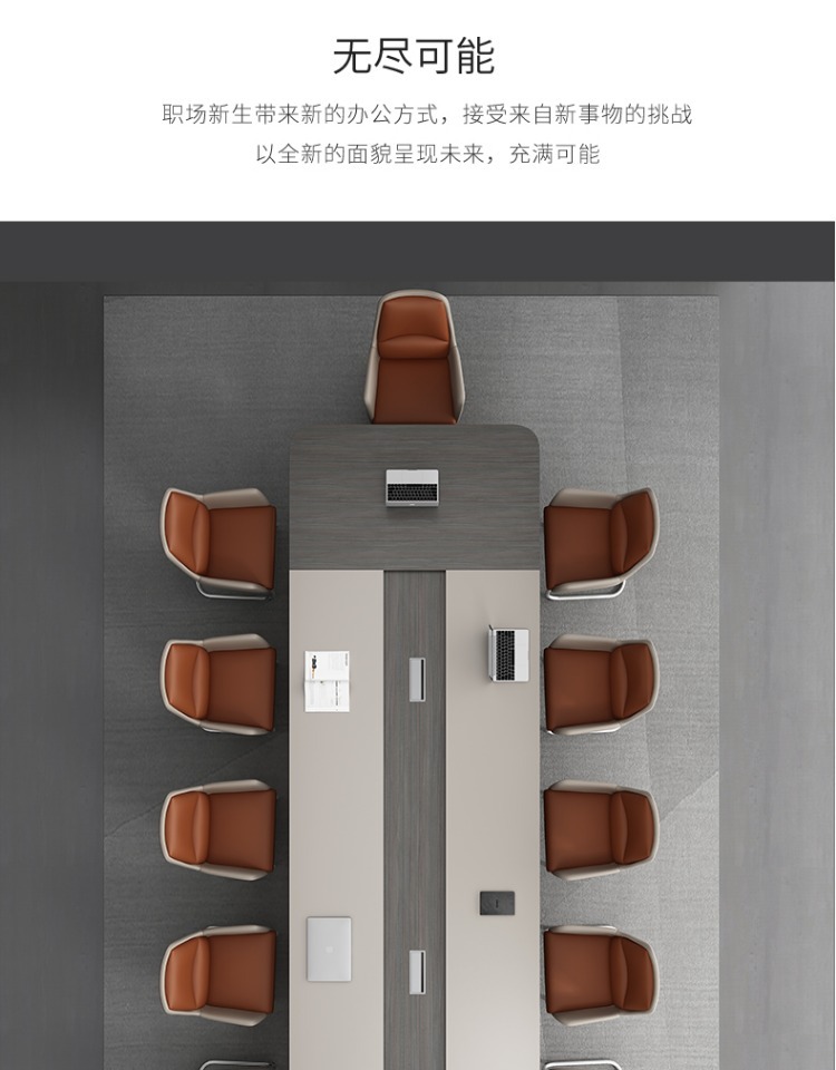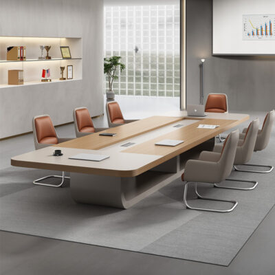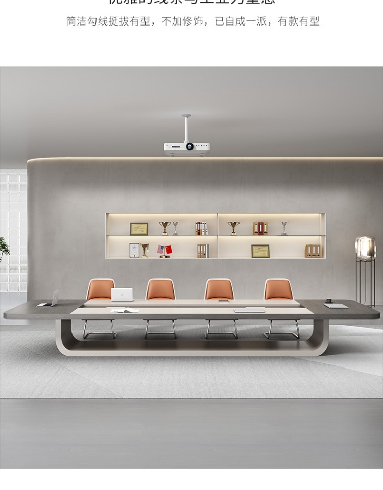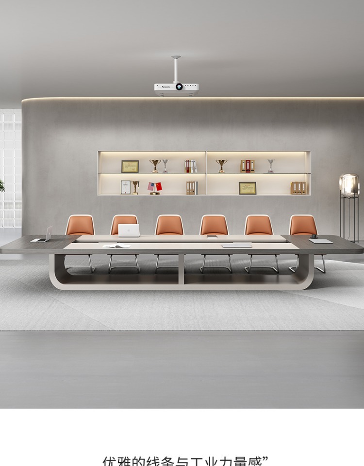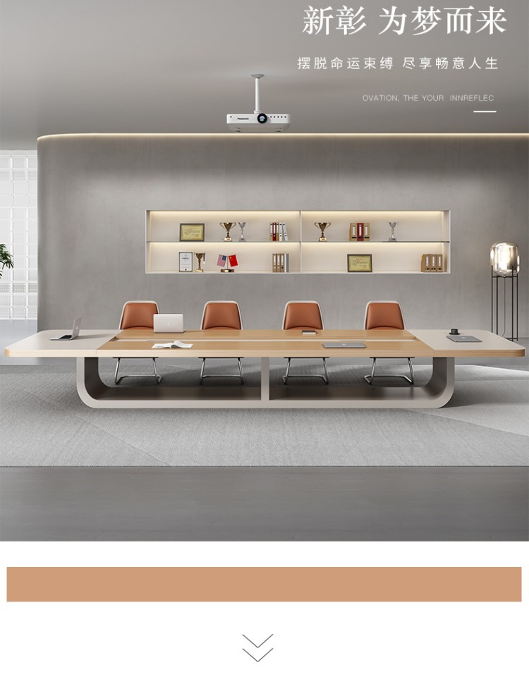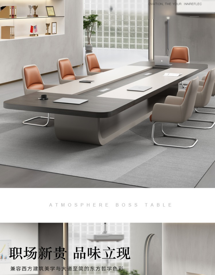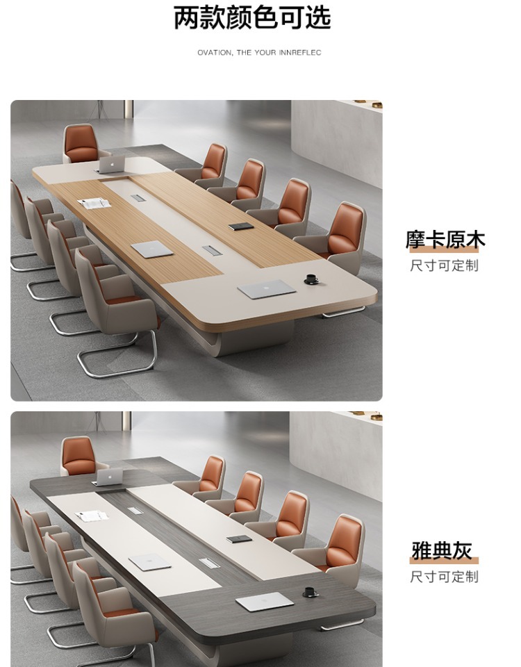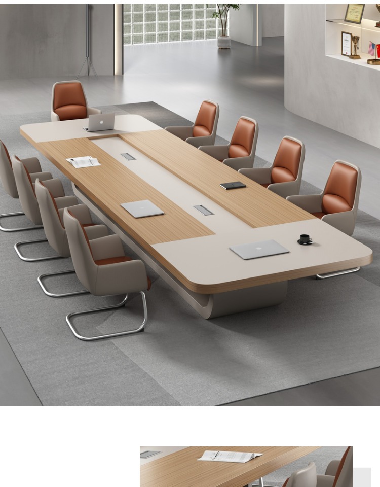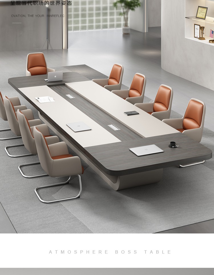 Bàn hội nghị dải dài, kết hợp bàn ghế hiện đại đơn giản, bàn làm việc hình bầu dục phục vụ đàm phán và đào tạo, nội thất văn phòng lớn