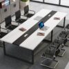Bàn hội nghị đơn giản hiện đại bàn dài bàn gỗ thép tấm bàn tiếp tân kinh doanh bàn đào tạo dải bàn ghế