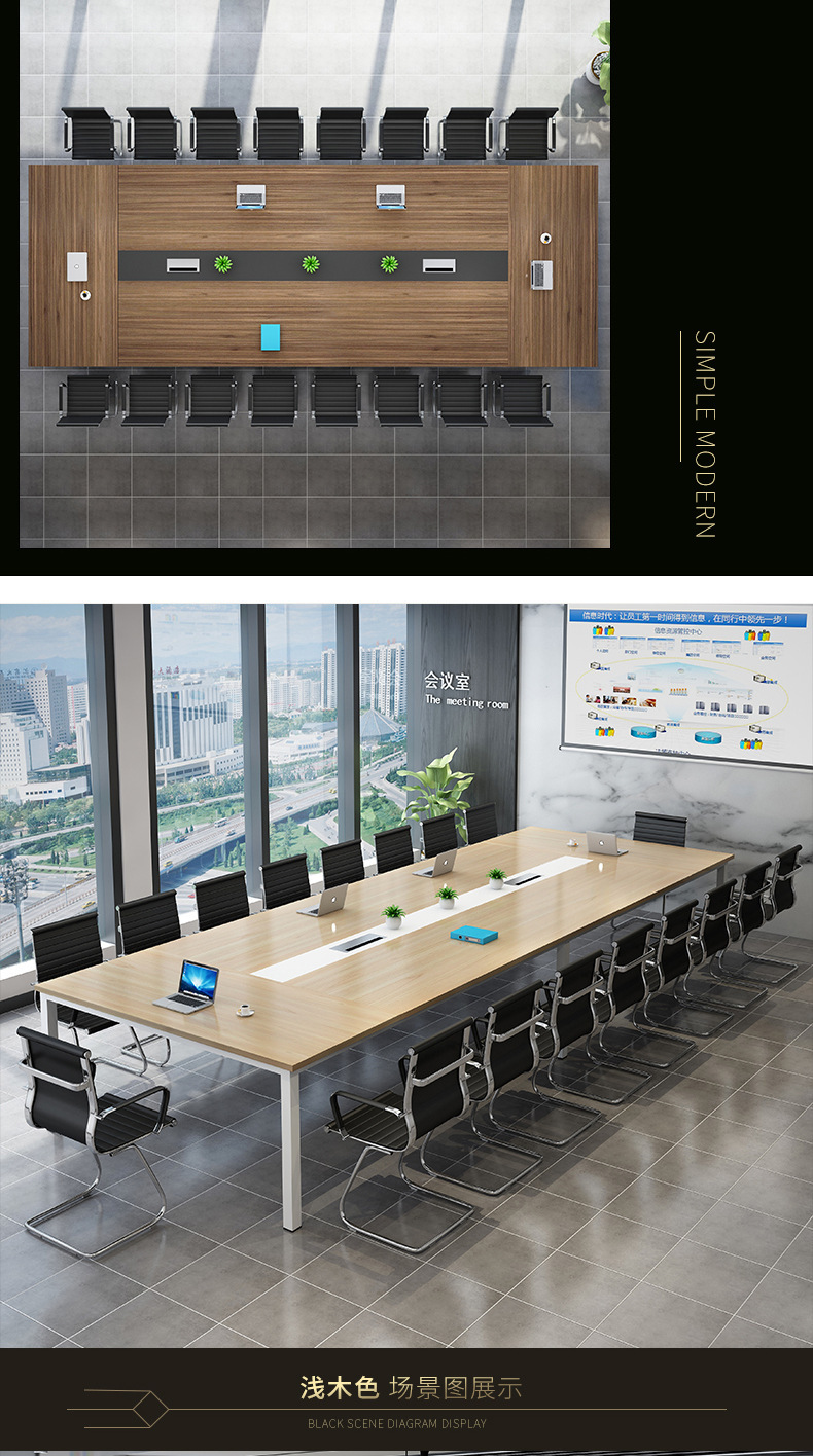 Bàn hội nghị đơn giản hiện đại bàn dài bàn gỗ thép tấm bàn tiếp tân kinh doanh bàn đào tạo dải bàn ghế