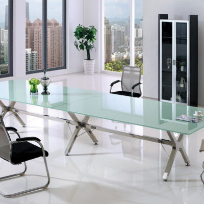Bàn hội nghị kính cường lực đơn giản họp khách bàn đàm phán bàn tiếp tân bàn ghế kết hợp thời gian họp bàn dài