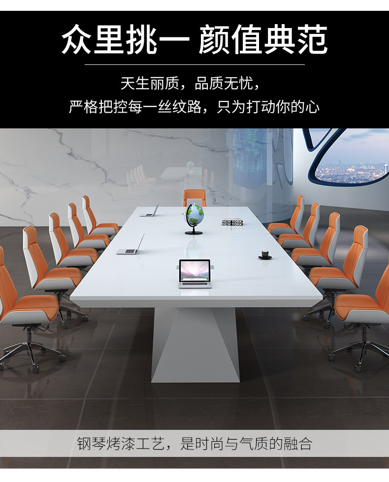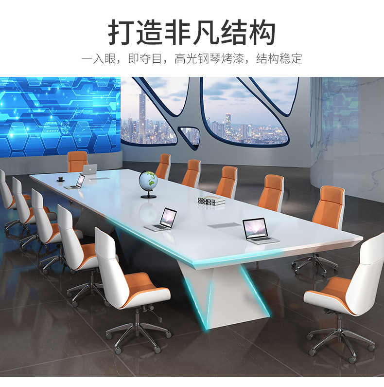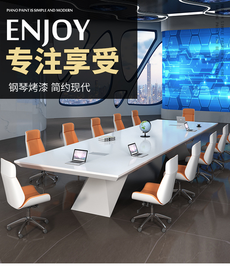 Bàn hội nghị lớn nhỏ bàn dài sơn trắng hình chữ nhật đơn giản hiện đại Bàn ghế đàm phán văn phòng thời trang và sáng tạo