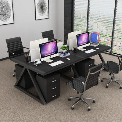 Bàn hội nghị tối giản hiện đại bàn nhân viên Bàn 4 người kết hợp bàn ghế đơn giản bàn máy tính khe cắm màn hình