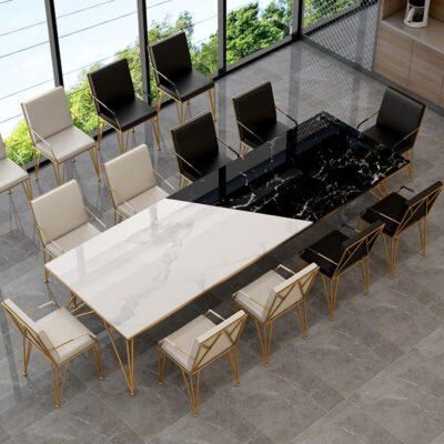 Bàn họp nhiều người bằng đá cẩm thạch tối giản hiện đại kết hợp bàn họp văn phòng khách đàm phán dải bàn dài bàn đào tạo