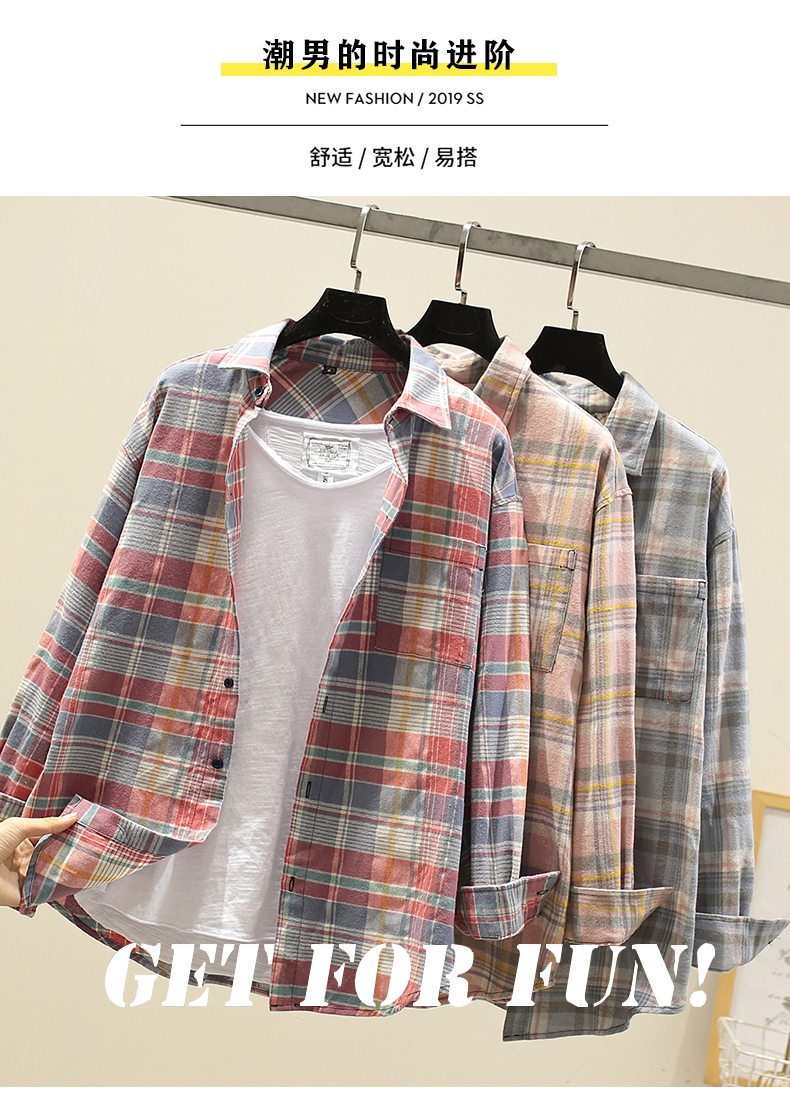 Bán kết mùa xuân và mùa thu mới của nam giới áo sơ mi dài tay áo khoác kẻ sọc thanh niên áo sơ mi sinh viên xu hướng vải cotton giản dị