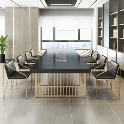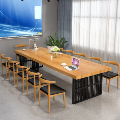 Bàn làm việc bằng gỗ nguyên khối theo phong cách châu Âu văn phòng studio bàn hội nghị lớn đàm phán đào tạo kết hợp bàn ghế nhiều người