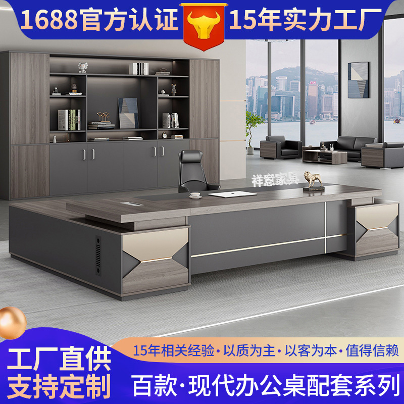 Bàn làm việc chủ tịch đơn giản hiện đại kết hợp bàn ghế tổng thống hai bên tủ điều hành bàn giám đốc nội thất văn phòng giám sát
