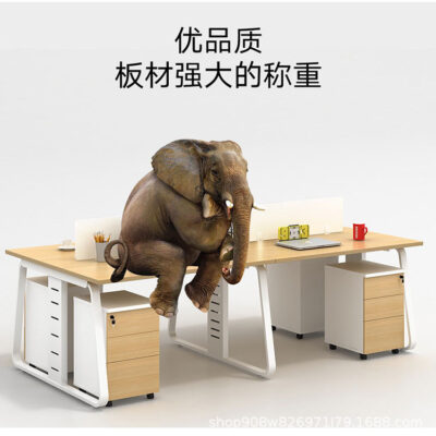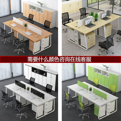 Bàn làm việc có màn hình nhân viên văn phòng 4 người bàn ghế nội thất đơn giản hiện đại kết hợp bàn ghế khung thép
