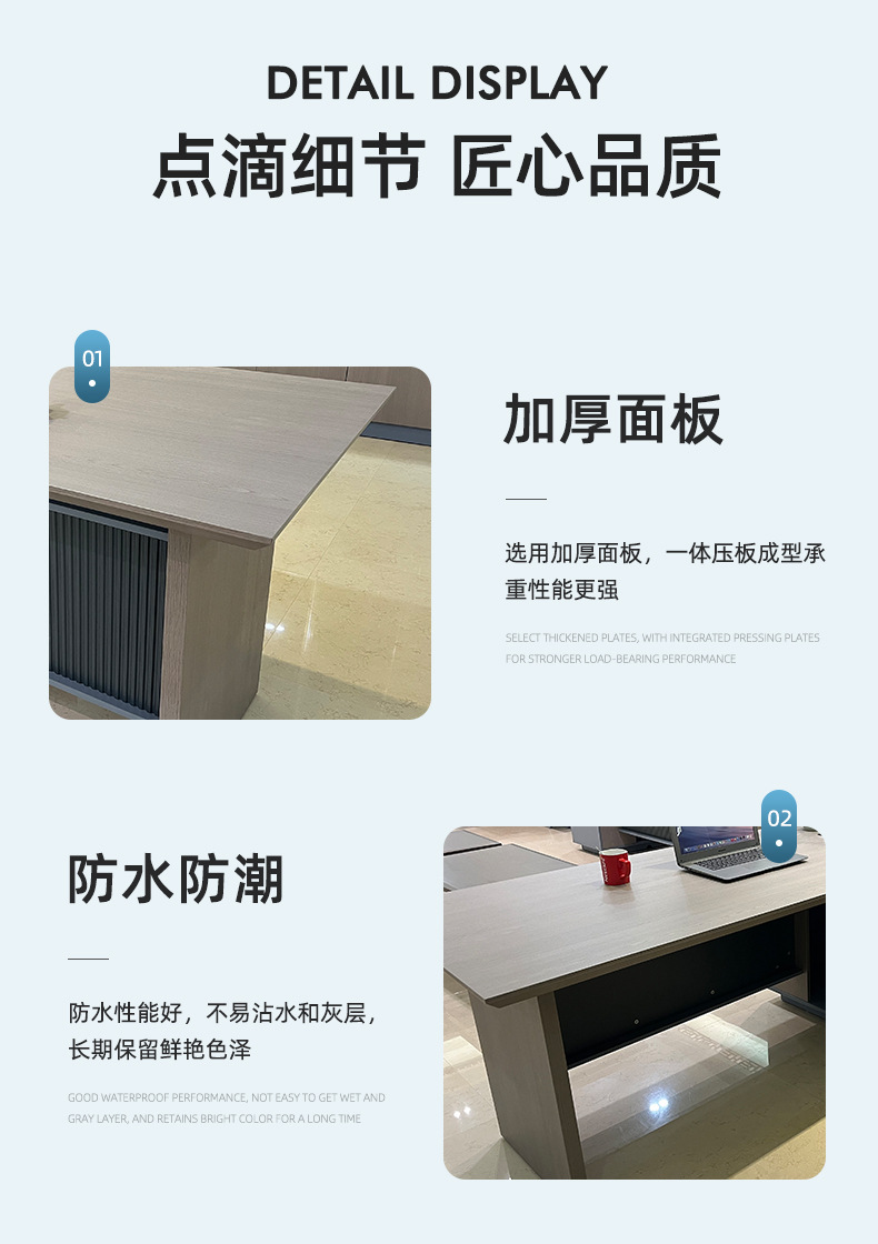 Màu sơn: Sơn xanh xám Thương hiệu: Sijin Số mặt hàng: 1 Danh mục sản phẩm: Bàn giám đốc Model: 1 Chứng nhận: Không Có giao hàng tận nhà hay không: Giao hàng xuống tầng dưới Có cung cấp dịch vụ lắp đặt hay không: Không Các dịp áp dụng: Cho dù là văn phòng chung Người nộp thuế: Có Dải cạnh : PVC Chất liệu cạnh: Kích thước bảng: 1800W*1650D*760H/2000W*1650D*760H/2400W*2000D*760H/2600W*2000D*760H/2600W*2000D*760H Không gian: Ngoài trời/địa điểm thương mại/khác /vật liệu panel khác : Thuộc tính thương mại của panel làm từ gỗ: thương mại trong nước có thể bị từ chối Do: có thể xuất khẩu xuyên biên giới Nguồn cung cấp độc quyền: không có kiểu dáng: hiện đại và đơn giản