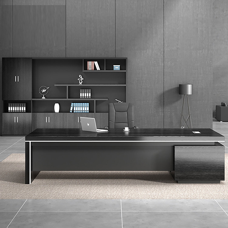 Bàn làm việc kết hợp ghế văn phòng màu đen đơn giản hiện đại Bàn quản lý Bàn giám sát Bàn điều hành Nội thất văn phòng