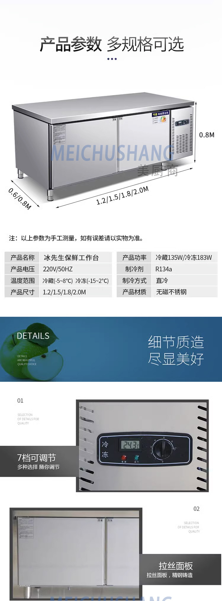 Bàn làm việc lạnh tủ lạnh thương mại bàn mổ tủ đông tủ đông ngang phẳng lạnh nước ngọt thiết bị thanh nhiệt độ kép